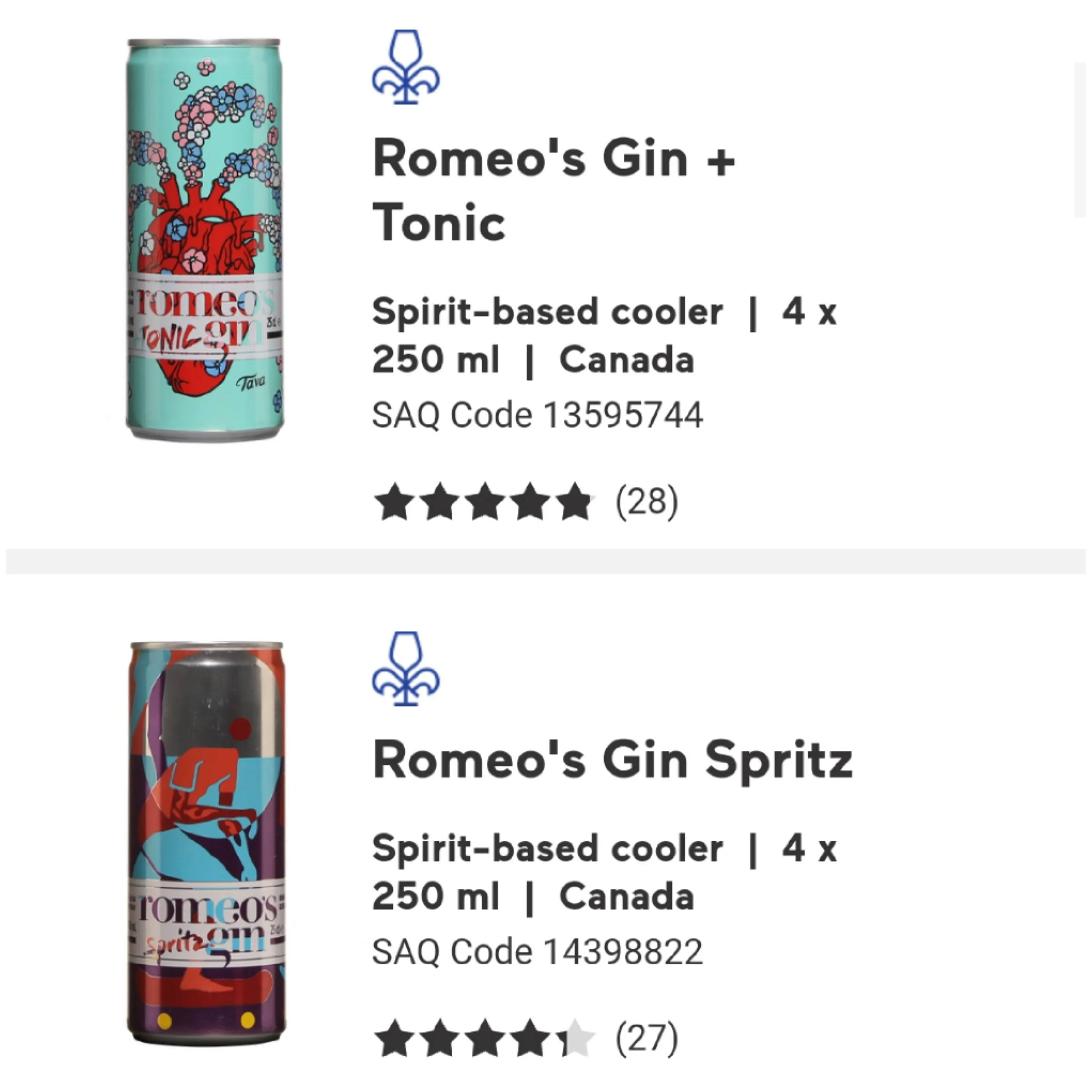 Gin Spritz: Code SAQ 14398822 // Gin Fizz: Code SAQ 13991675