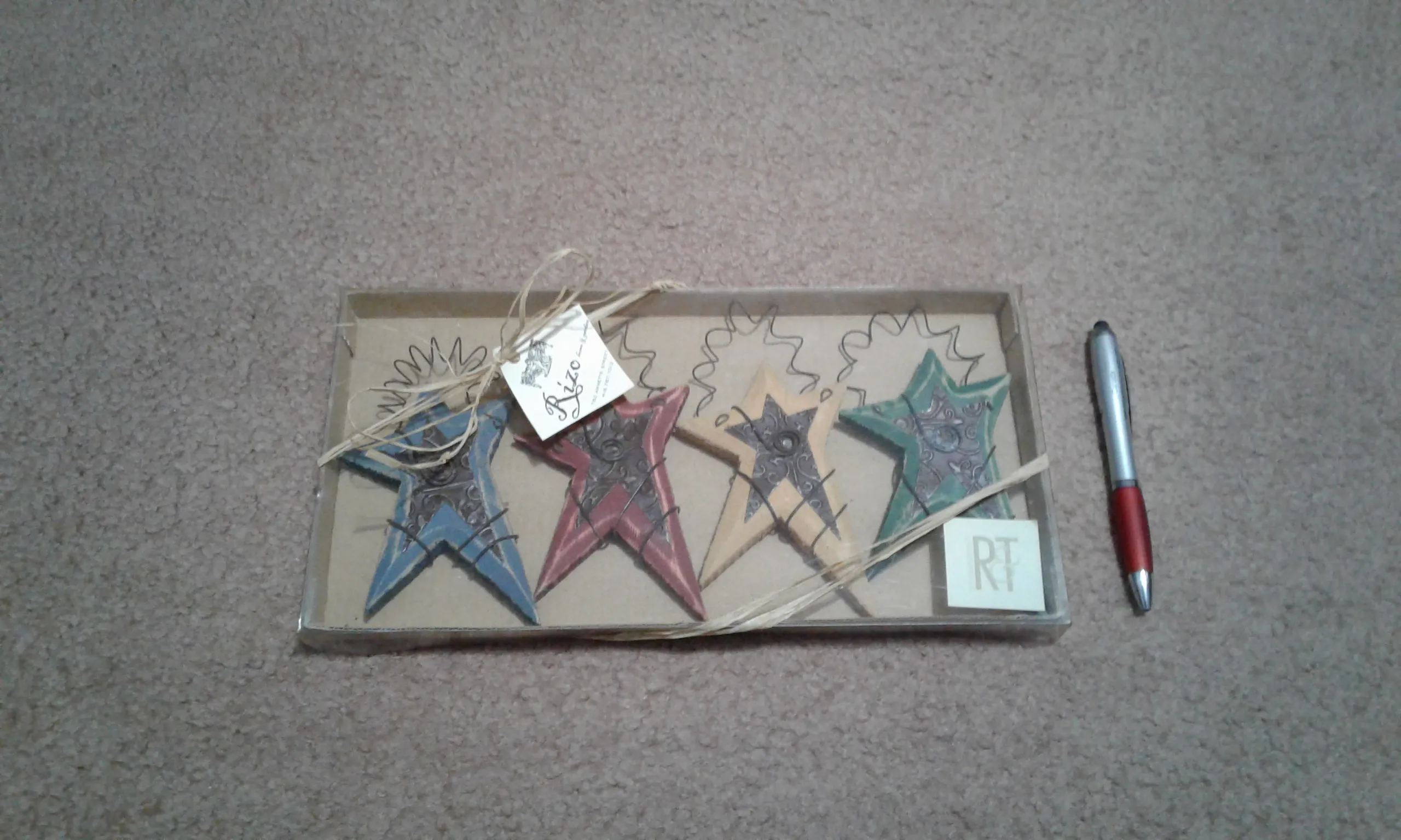 Crafted from wood and metal by Rosemary & Time. (Pen for scale.)