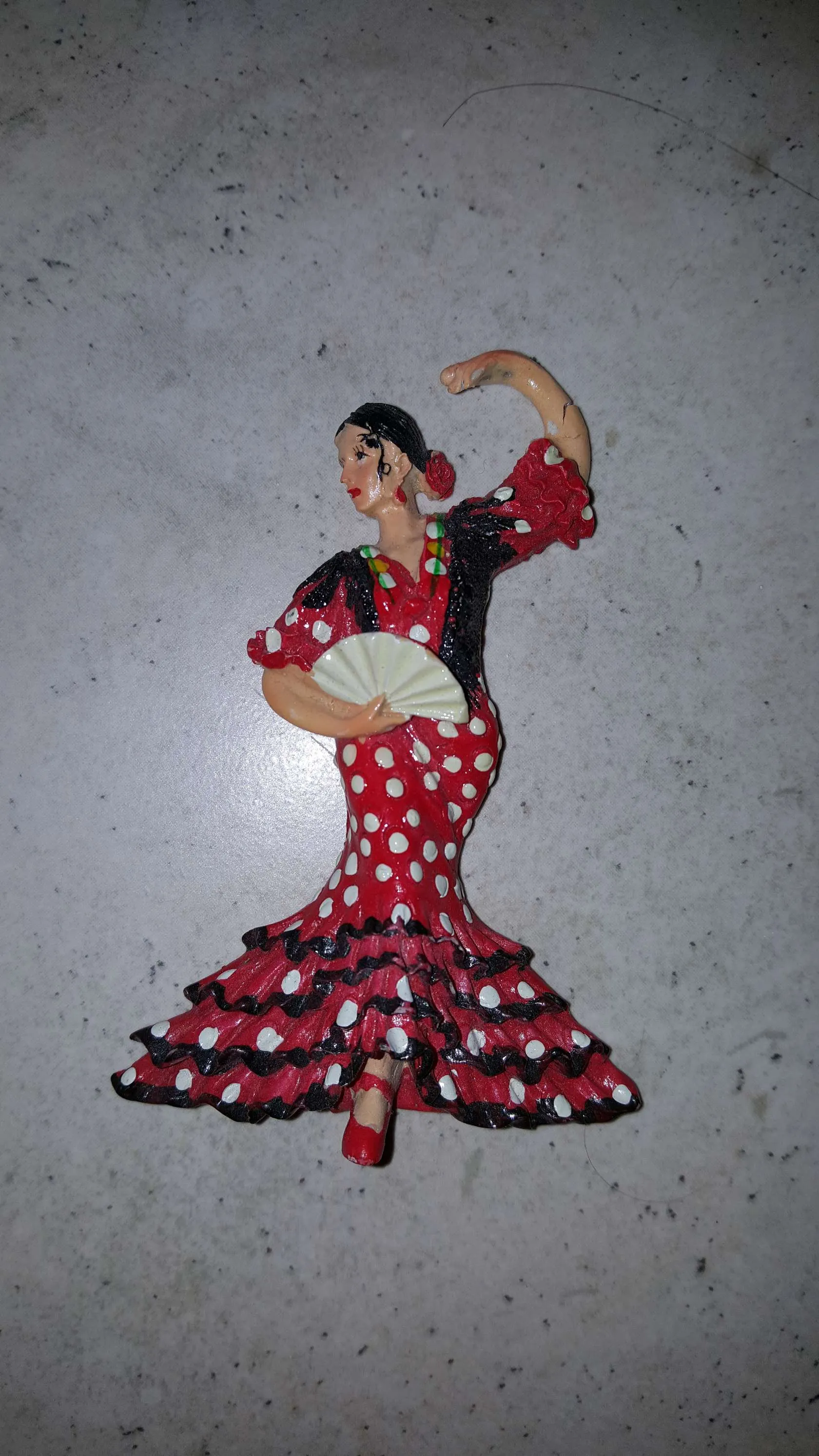 Dancing Spanish Lady -- Used to be a magnet but the magnet fell off -- you could glue a magnet on?