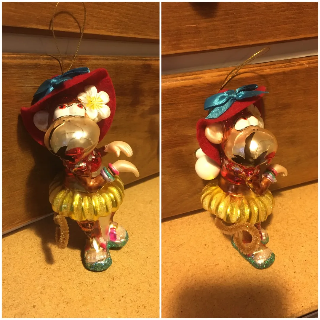 Glass ornament, broken face, partially glued. Has glitter. Porch pickup East end near Greenwood Ave and Mortimer Ave.