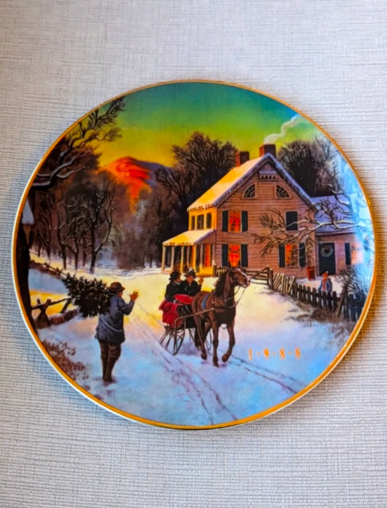 Home for Holidays Avon 1988 Christmas Plate with Porcelain 22k Gold Trim why