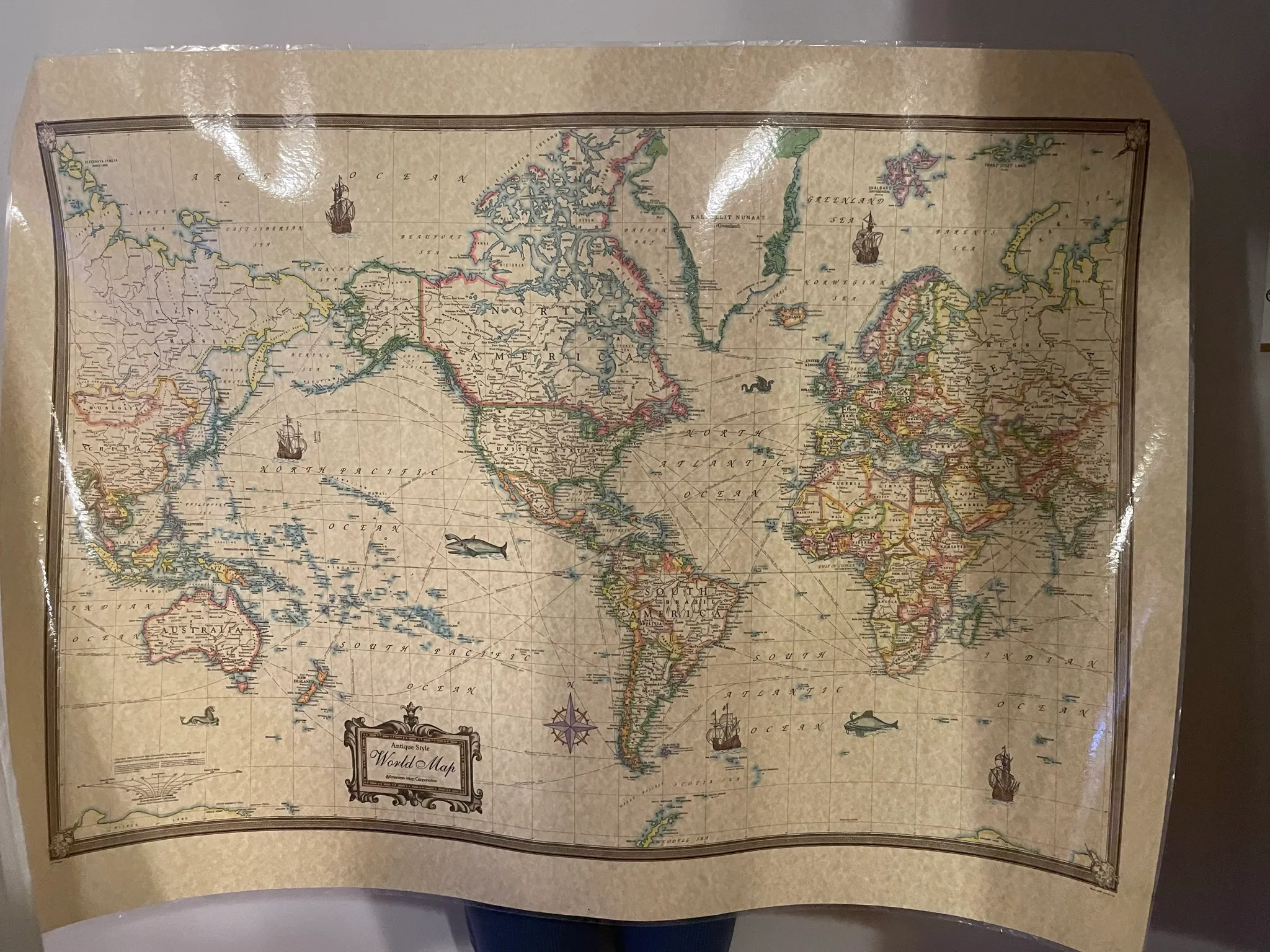 Up on offer is big ol' map of the world. I took measurements but have now misplaced them so I'll have to measure again. Anyway, it's as wide as your arms outstretched and almost that tall. It's laminated. Great to pin up on your wall and mark where you've been or want to go. . ISO - I'm looking for say a $20 trade value. I'm open to consumables like food/drink (NOT edibles/weed), such as some groceries, beer, etc, fragrances, some random giftcards, BTZ (3000) even though they're worthless, etc... Whatever really. Shoot me an offer! . Location - Pickup at Ossington station preferred but I can commute too (within reason).