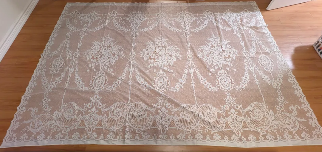 Large Lace Home Decor Linens (2 Identical Pieces). Dimensions are 82 inches by 120 inches.
