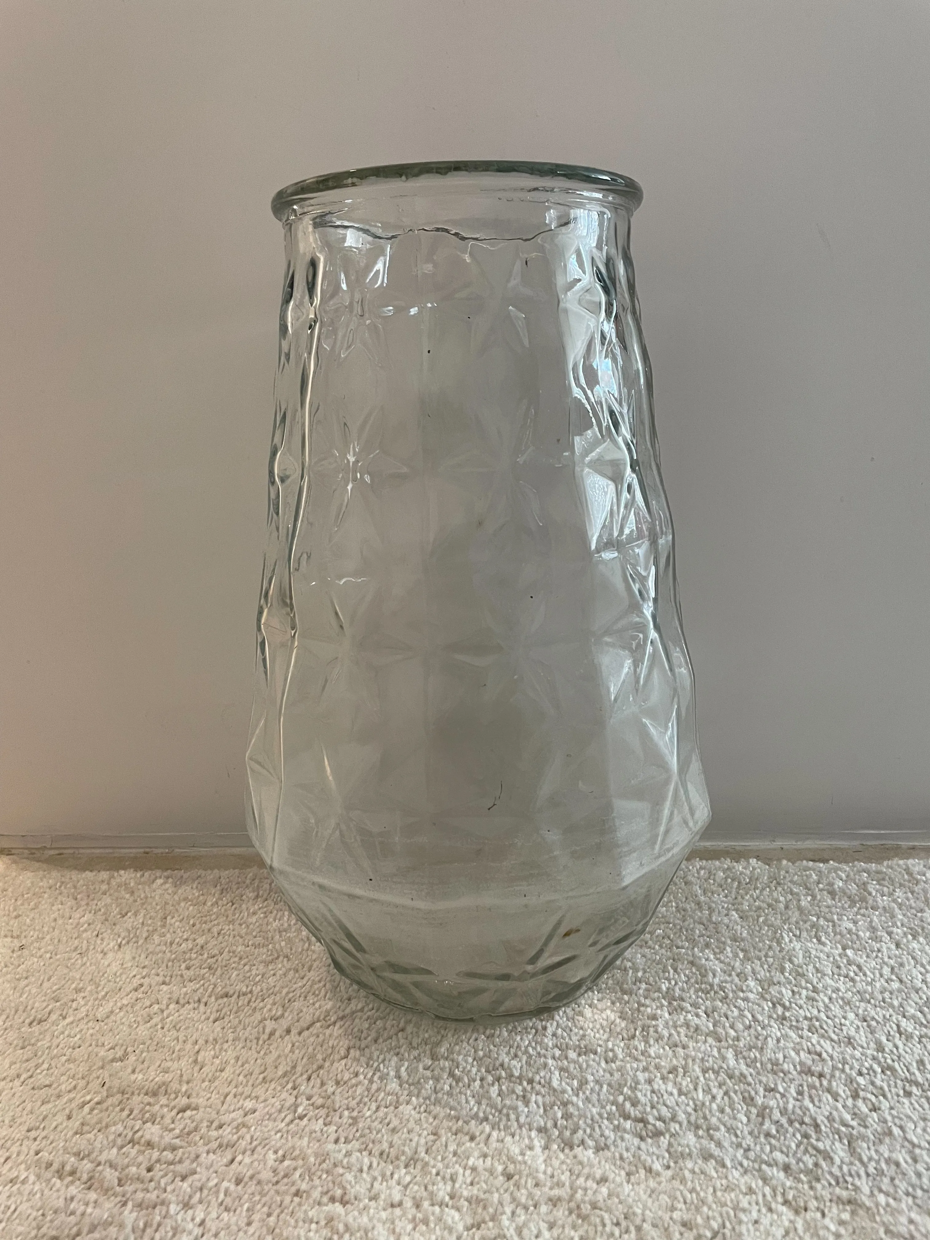 Large glass vase, 14” tall x 6” wide, excellent condition