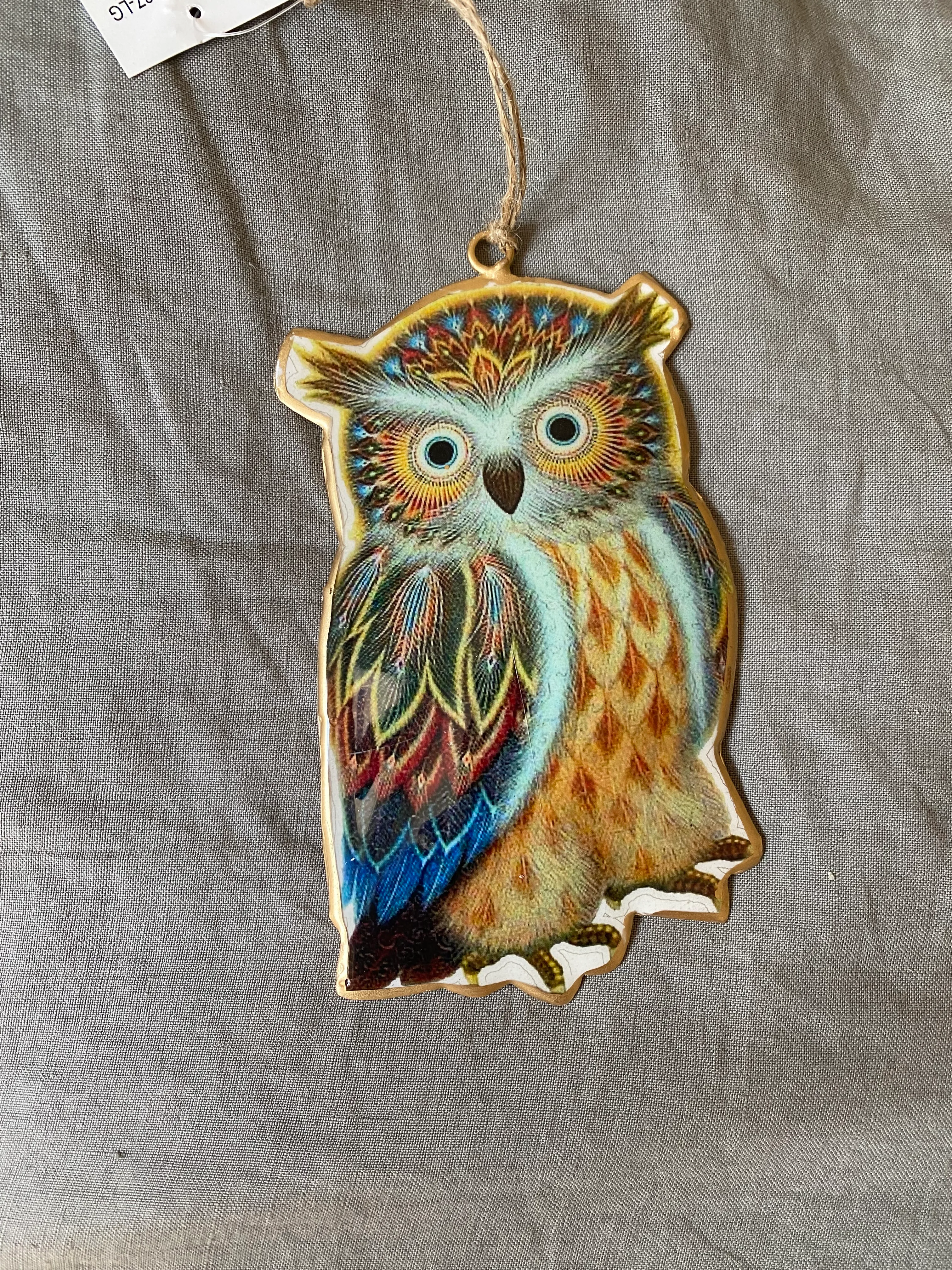 Owl ornament. Made in India. The owl is 15 cm tall.