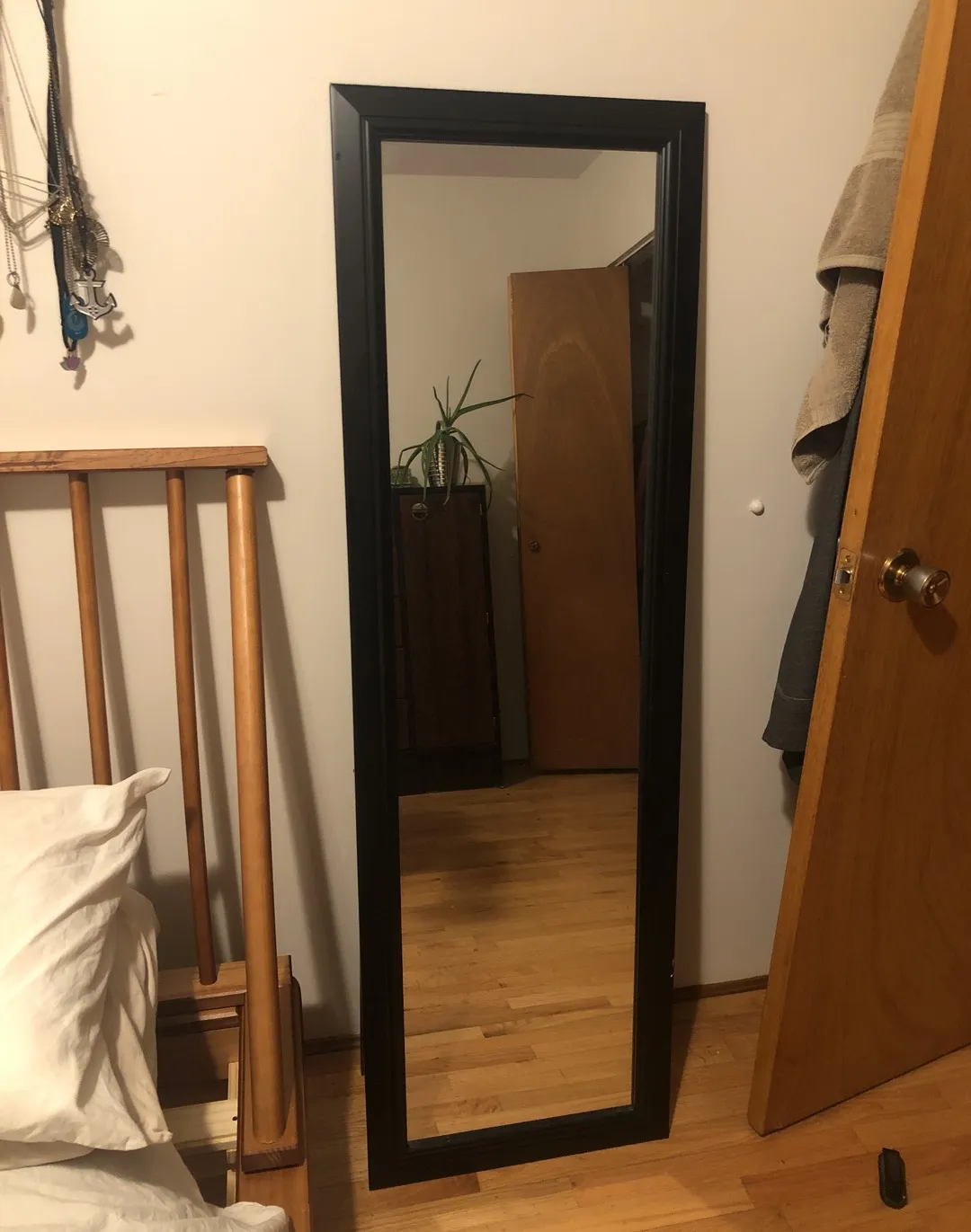 58 inches by 18 inches Can lean against the wall, and also has a kick stand in the back. Good condition!