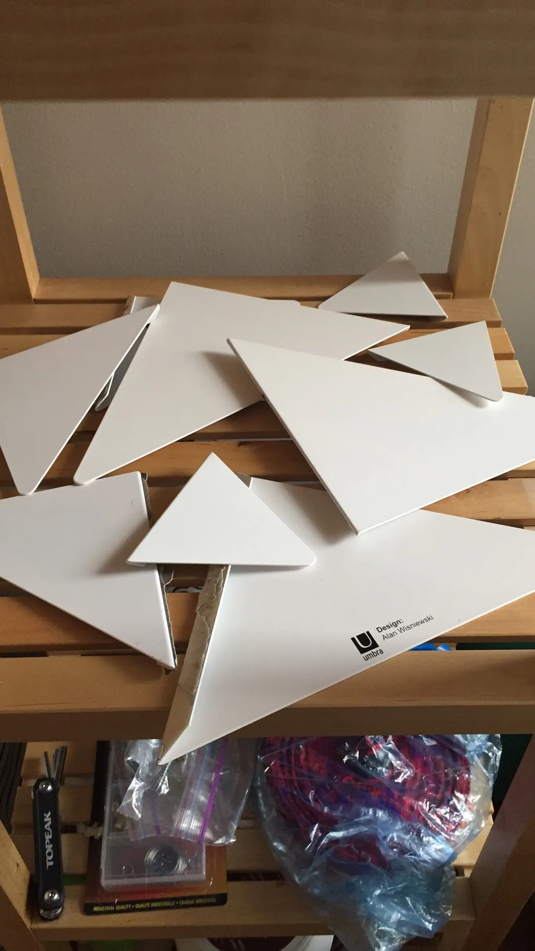 More pieces not shown. Different sized triangle pieces that look great on the wall (sticks to the wall)