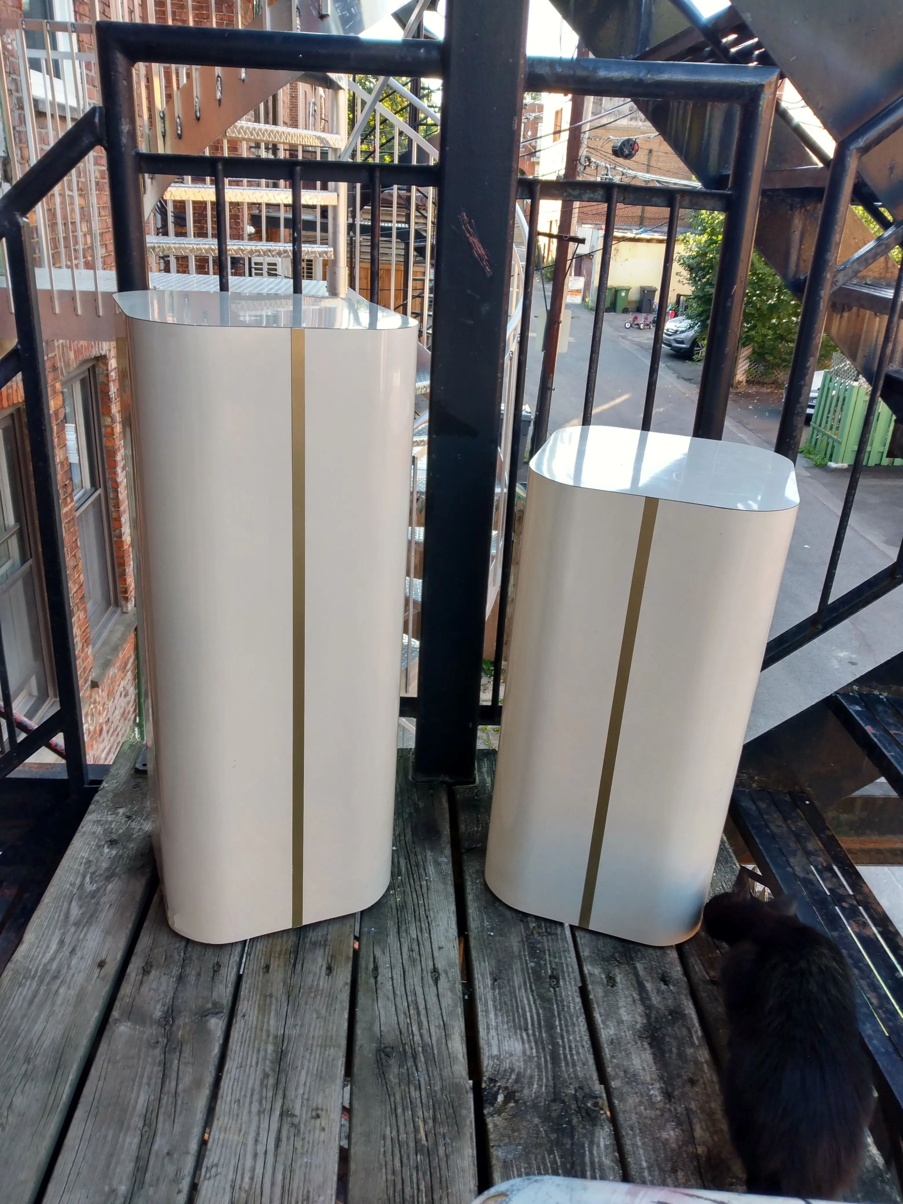 Vintage cream and gold podiums Small damage on large one Only trading for an oz of smokeables