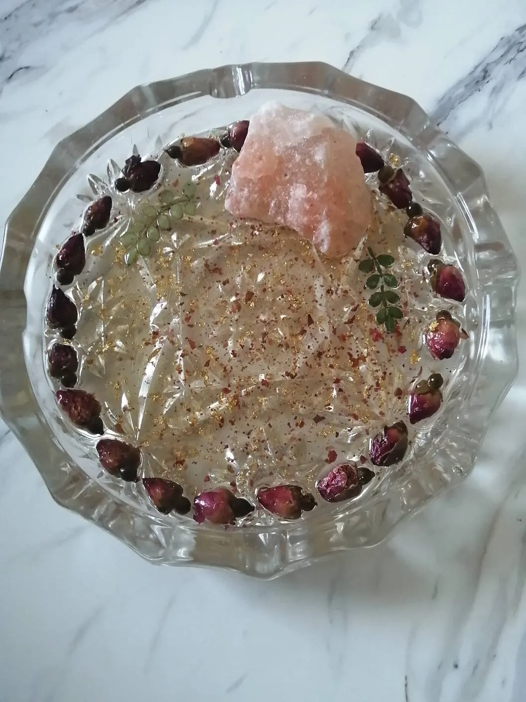 Vintage Crystal Resin Dried Flowers And 24 Kt gold Leaf Tray πΈ 7in X7in