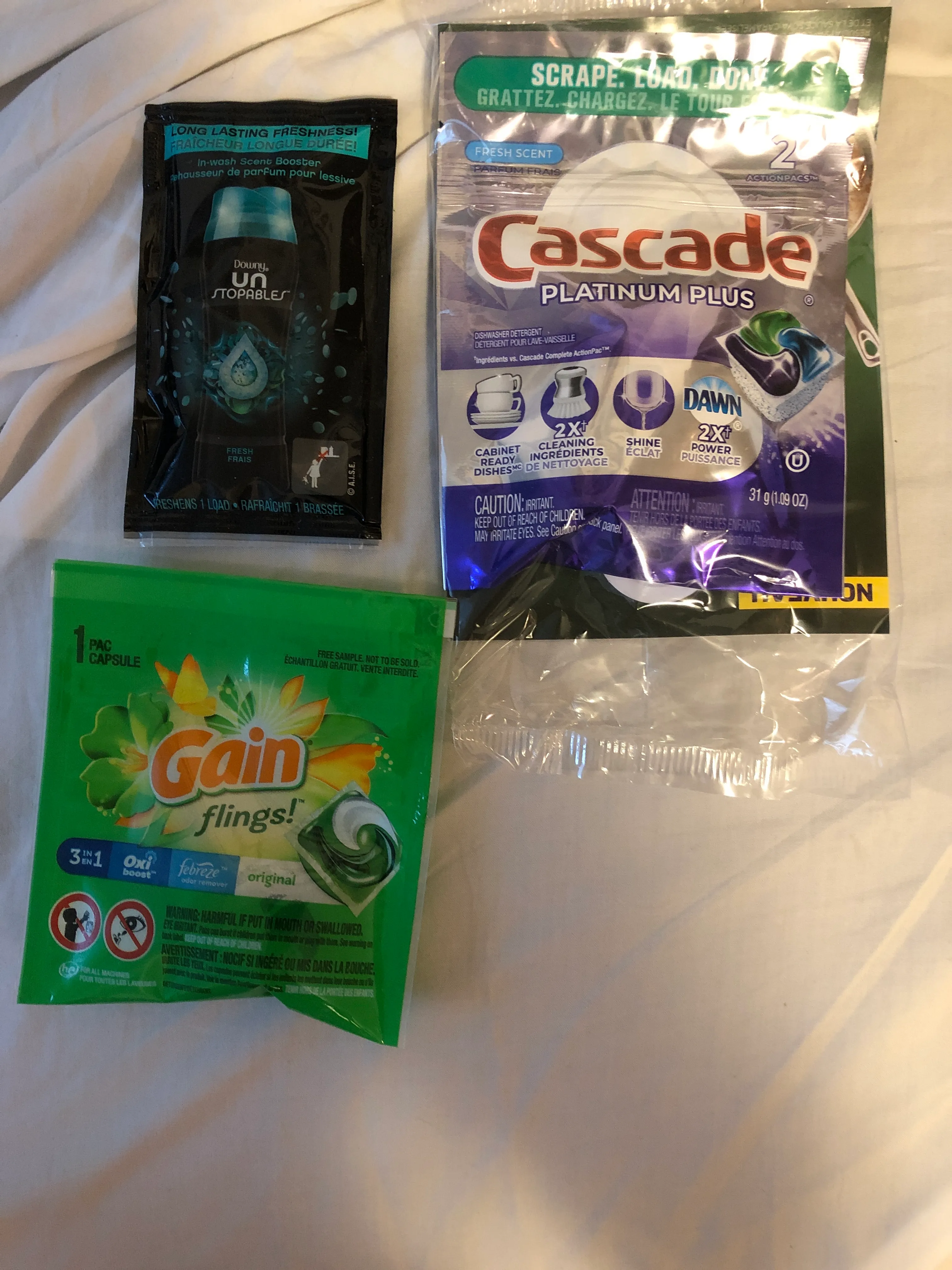 1 Downy Unstoppables 1 Cascade Platinum Plus TRADED 1 Gain flings