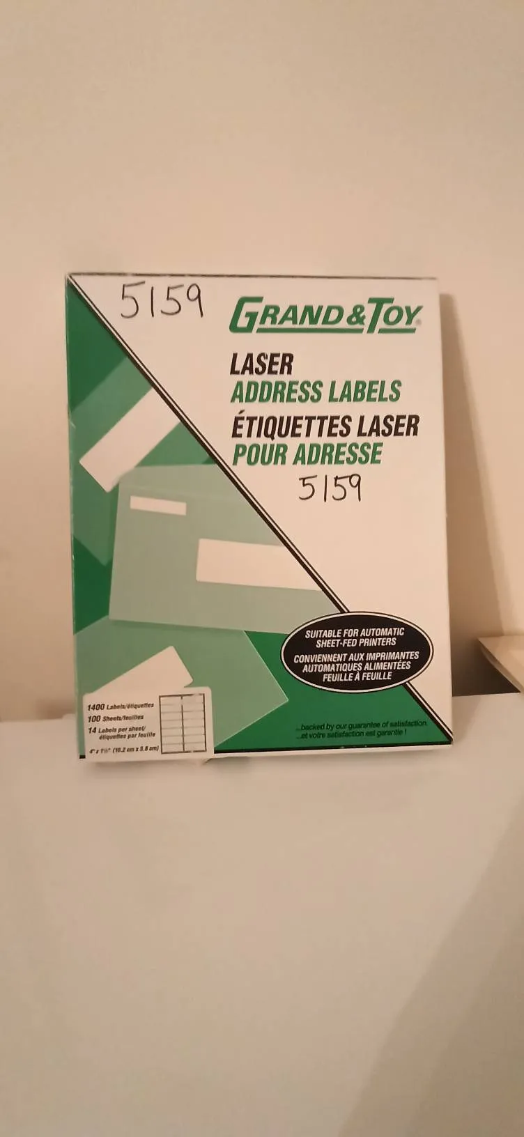 10.2cm x 3.8cm , 43 sheets with 14 labels per sheet=602 white labels. Product code 5159