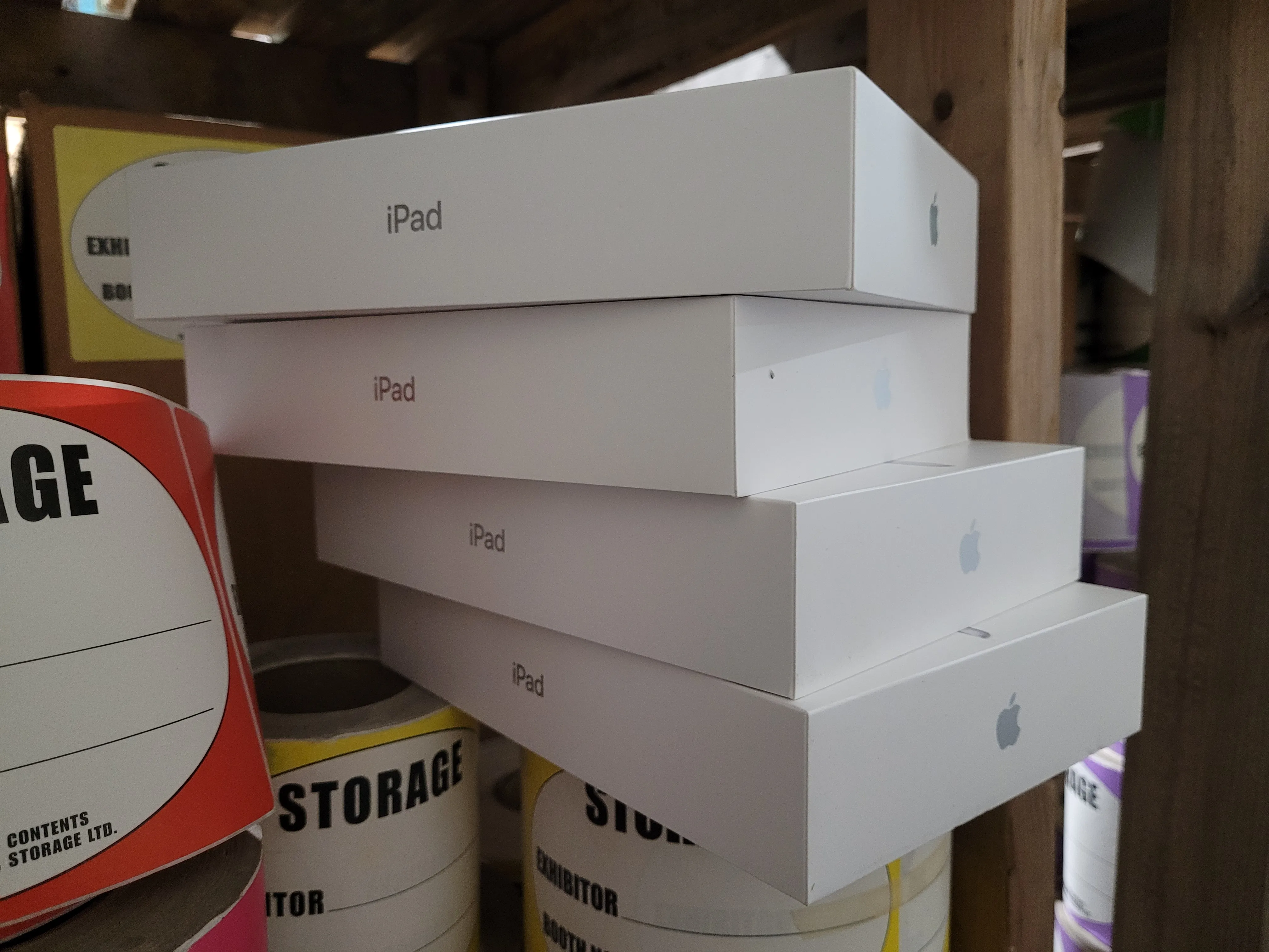 empty opened iPad boxes. Great for storage or pranks. Boxes only, no iPads included. Check images. boxes look mint condition but have a sticker on the back. maybe you threw yours out and regret that. This is in storage and I will meet you there. I can access the building during 8 to 430 Monday to Friday. No one is there outside of those times.
