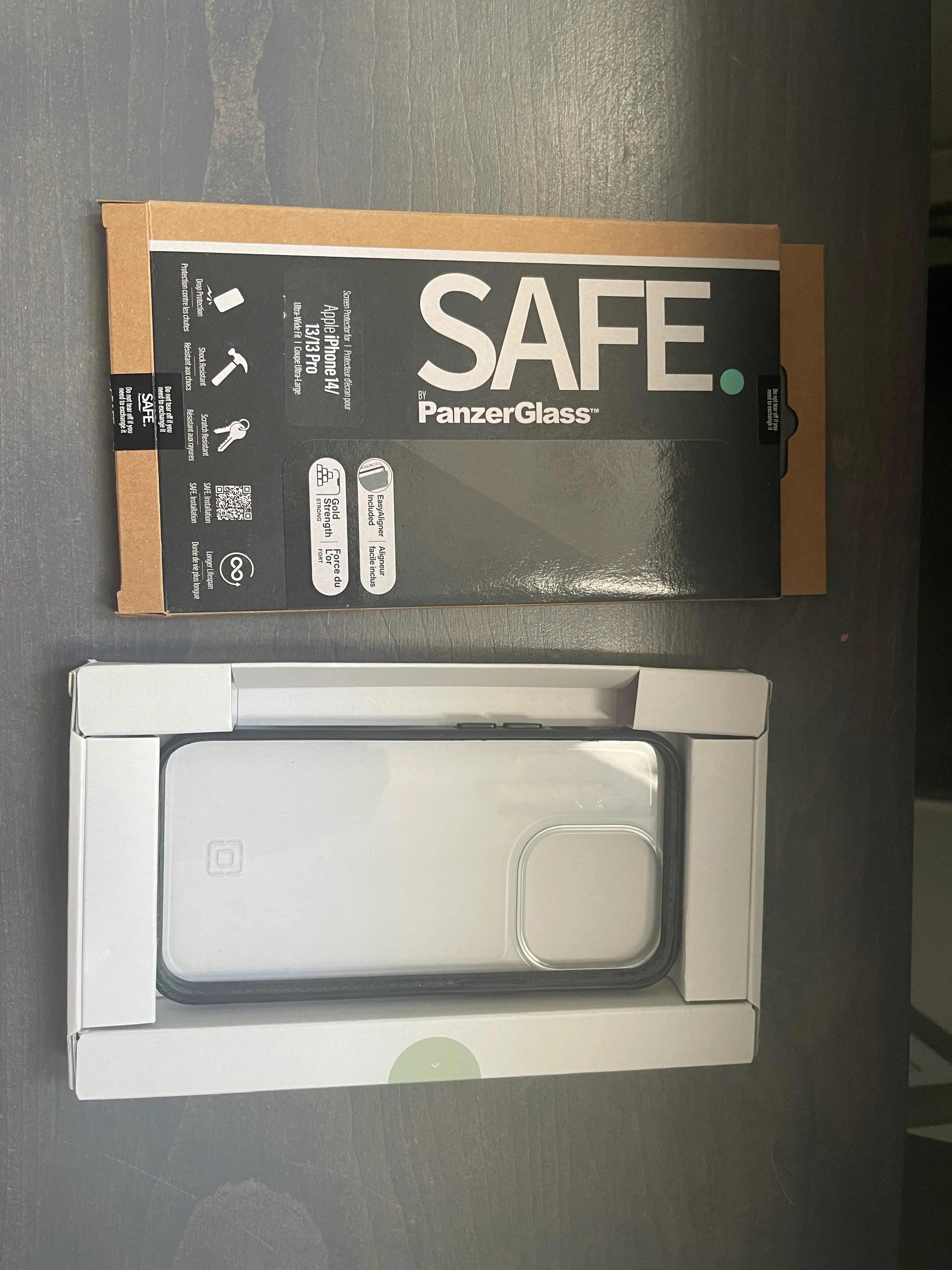 iPhone 13/14 PRO glass screen protector. iPhone 13 PRO Incipio Organicore Clear Charcoal case.