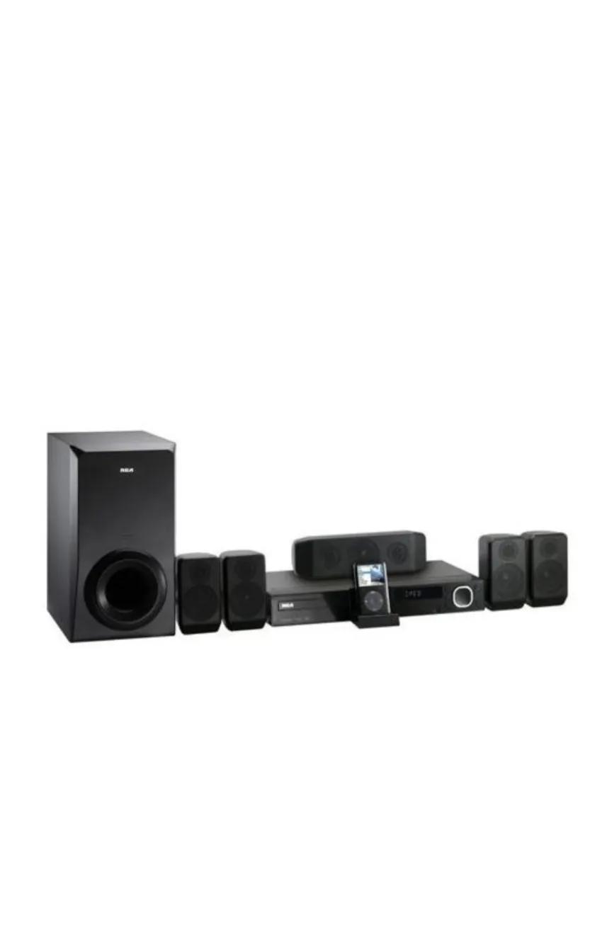 DVD system that also includes (pre-lightning connect) iPhone port, AM/FM antennas. Comes with remote, front, rear and center speakers and subwoofer. Quick setup sheet, remote batteries and HDMI cable included.