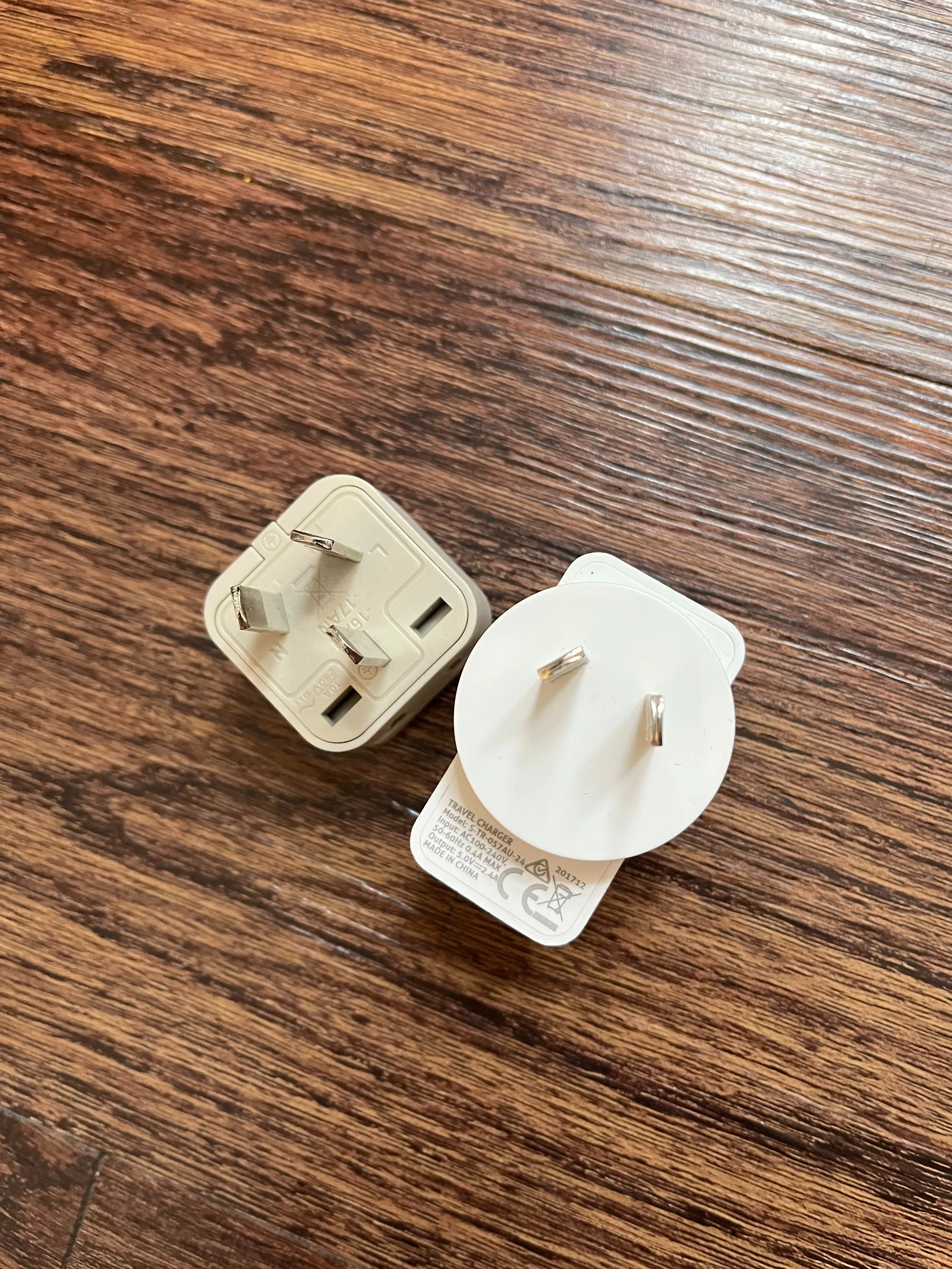1 x USB charging block (2 ports) 1 x grounded electrical outlet converter