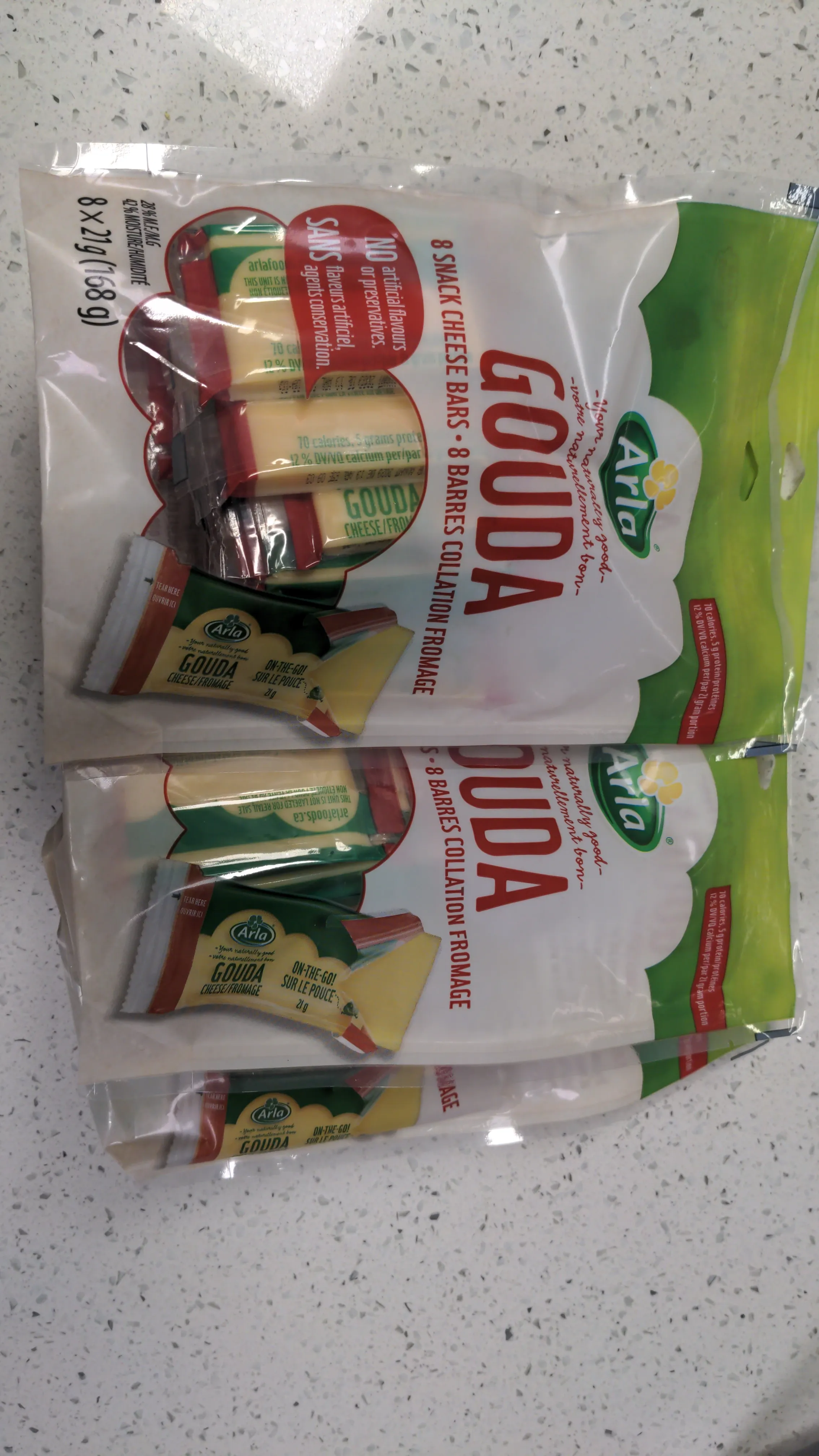 Unopened packs of snack size Gouda cheese. Best before Dec 13 2023, but still good (I ate a pack the other day).