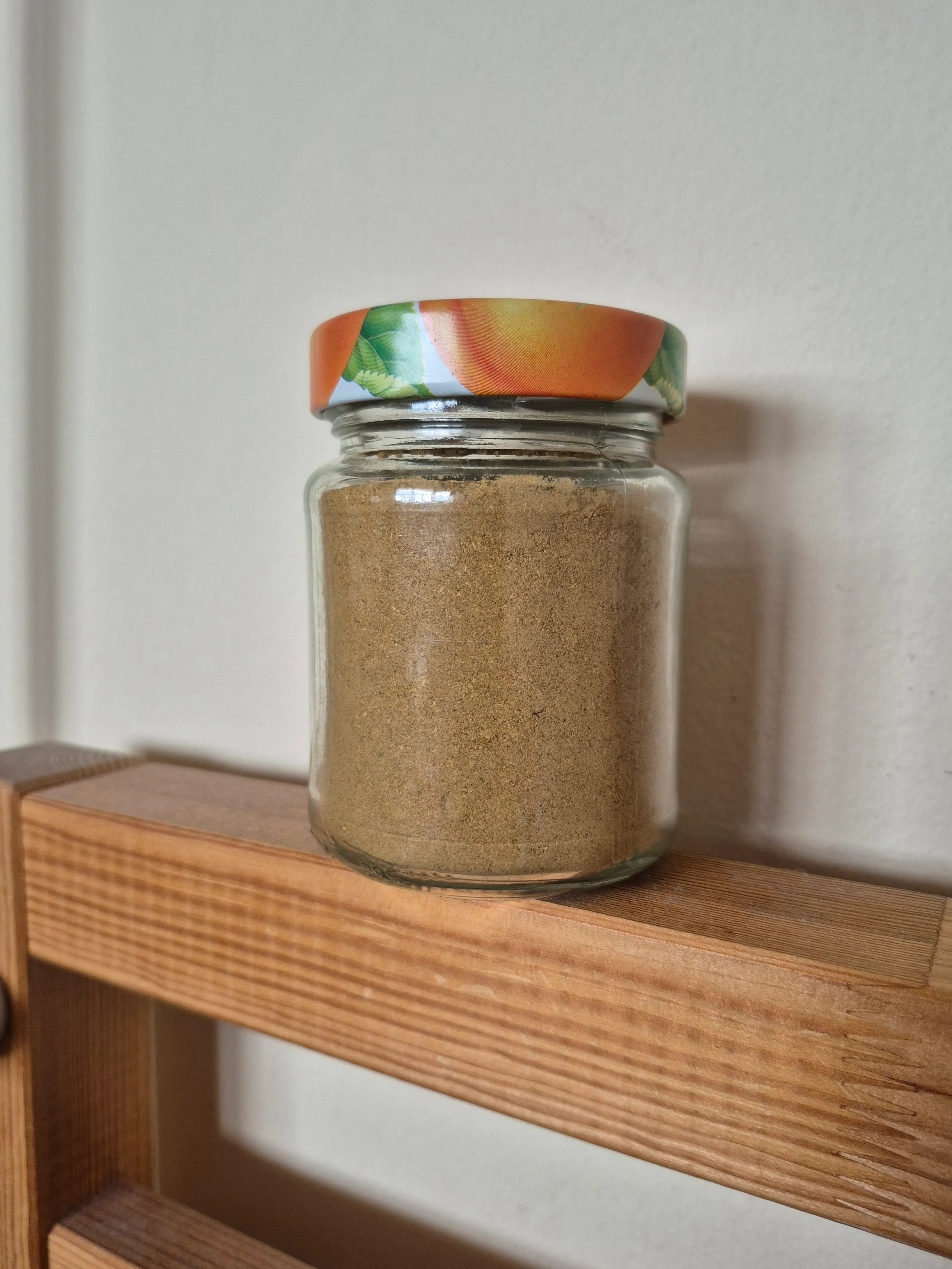 š Fresh. Just bought. Lovely and aromatic. But it's more than I need, so I filled this cute glass jar and am offering up 110g.