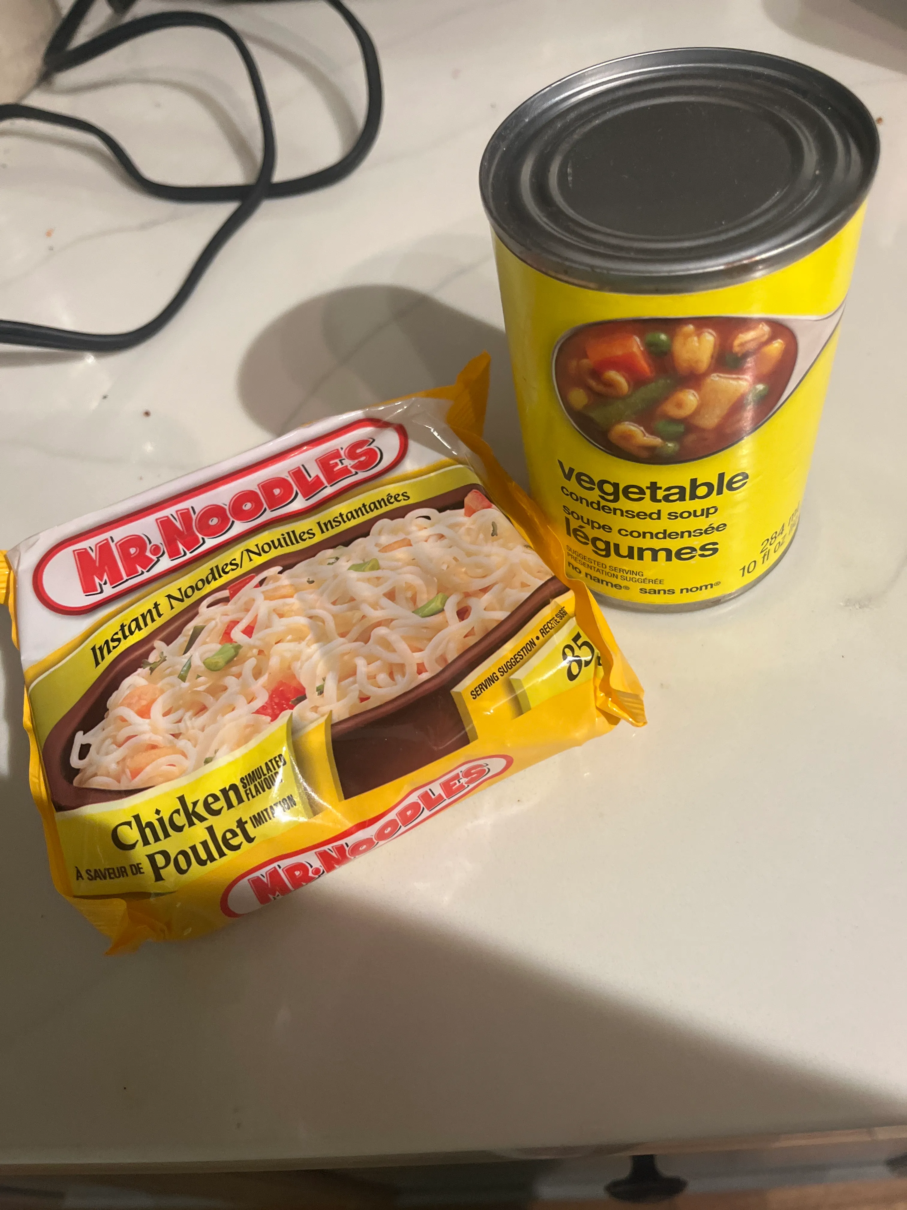 Mr noodles & veggie soup. 🍲 veggie soup EXP JULY18/20