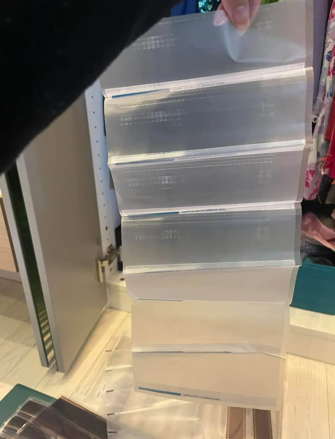 Free. I have several (around 15) film sleeves for 35mm negatives. Not for binders as they are just the sleeves shops give when processing is done.