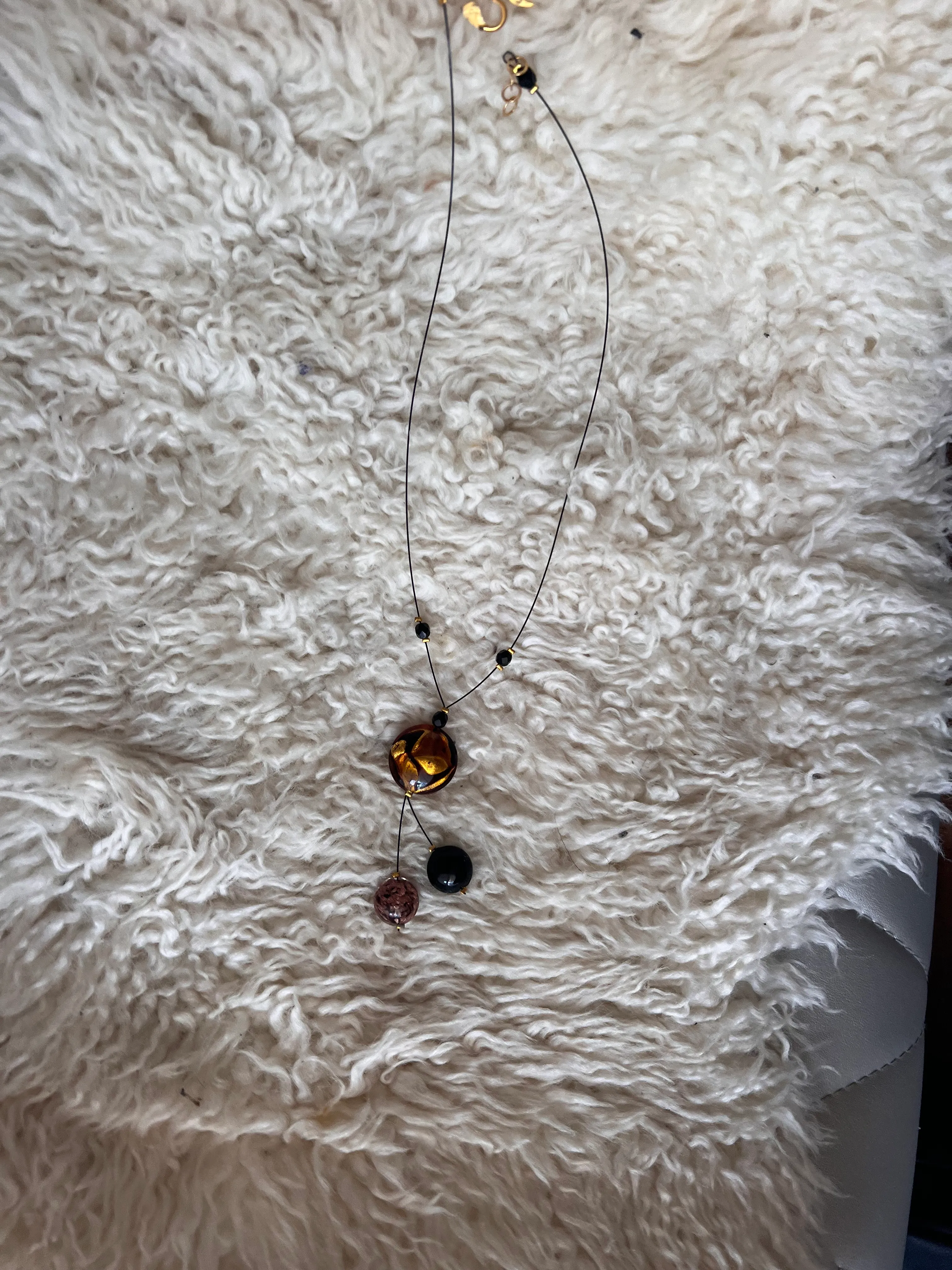 Gorgeous black and gold Murano glass necklace. It was a gift bought in Italy, never worn. The clasp broke as I was taking a photo. It’s free if you want to replace the clasp or use the beads for something else.