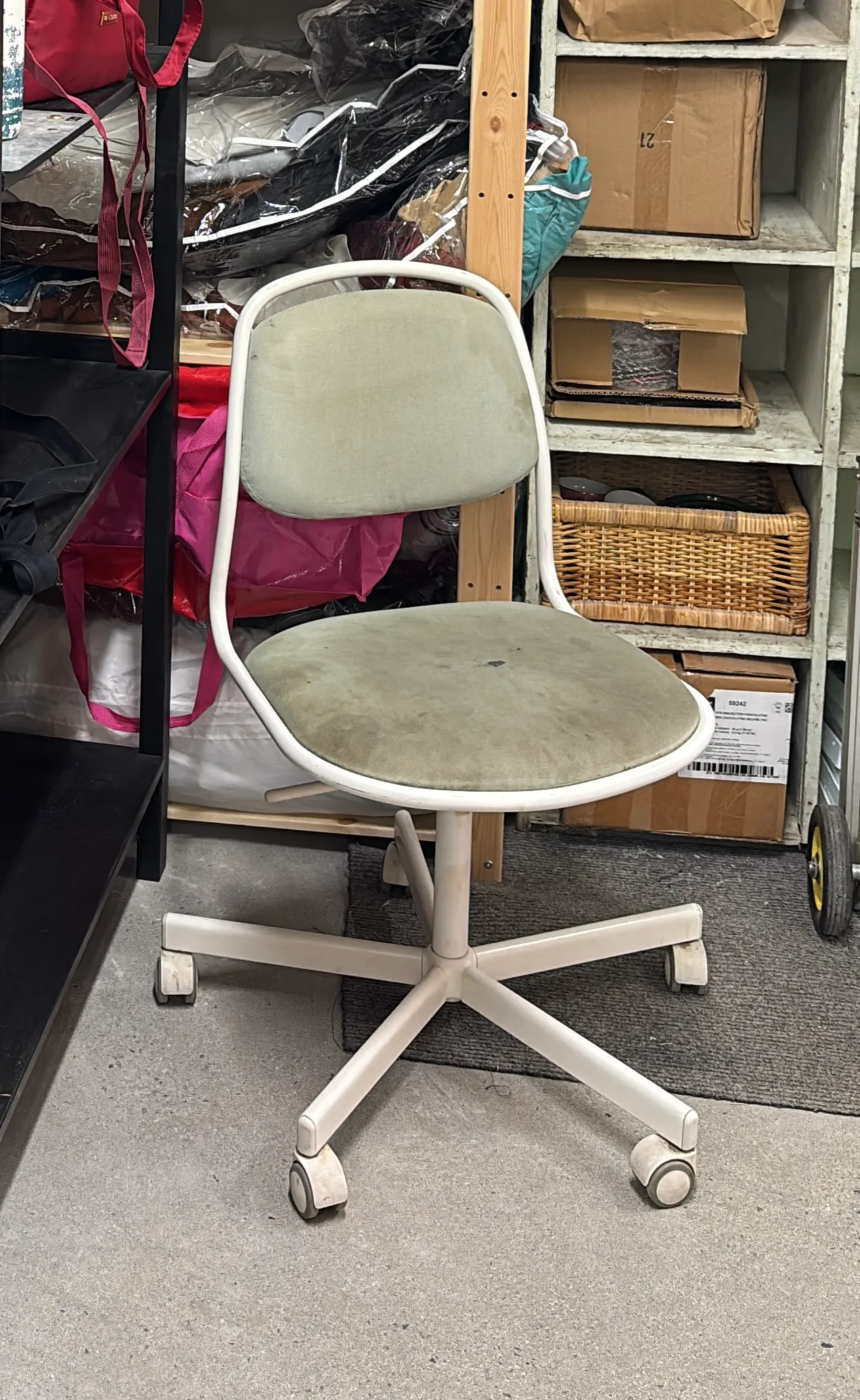 The chair is clean and comfortable, only issues are some stains on the seat and the wheels donโt roll as well. But great office or sewing chair, the lever works to raise or lower the height