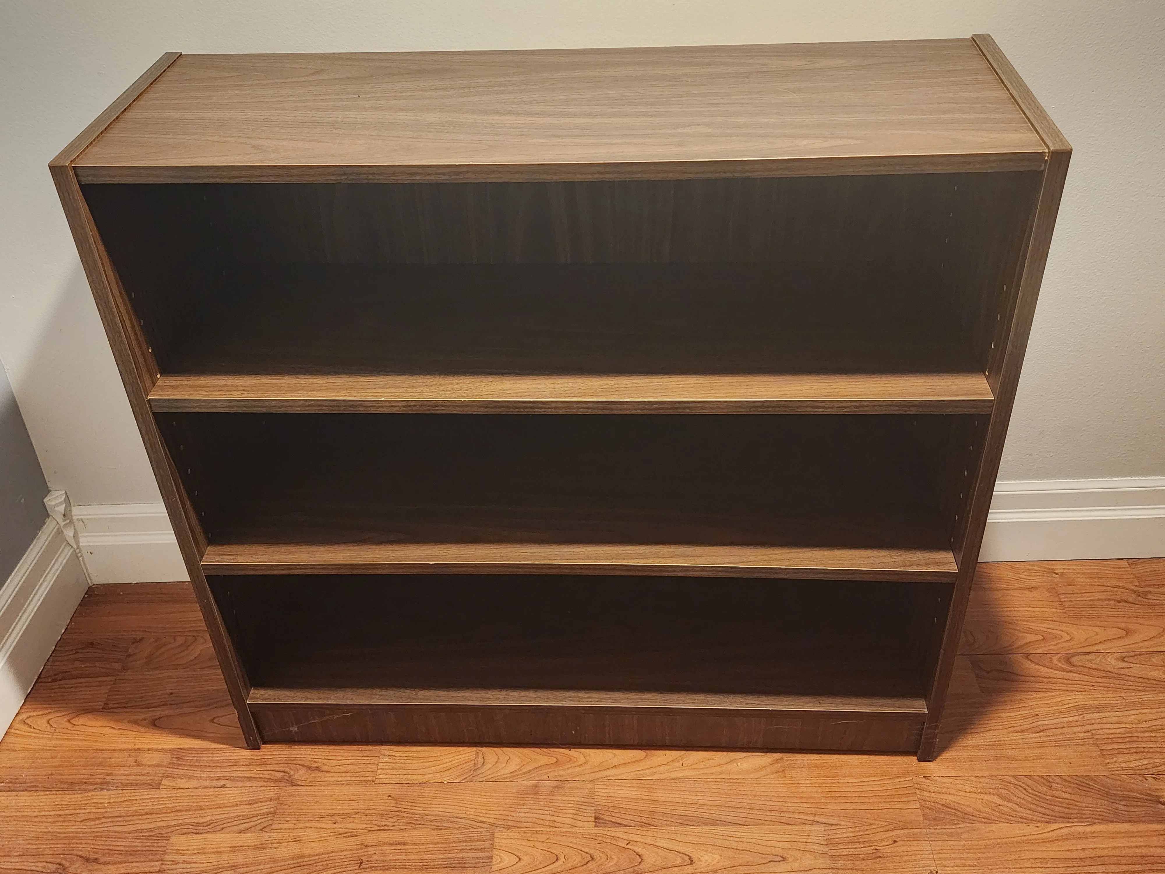 Free bookcase with adjustable shelves. Measures 35 " wide x 32" high x 12" deep.