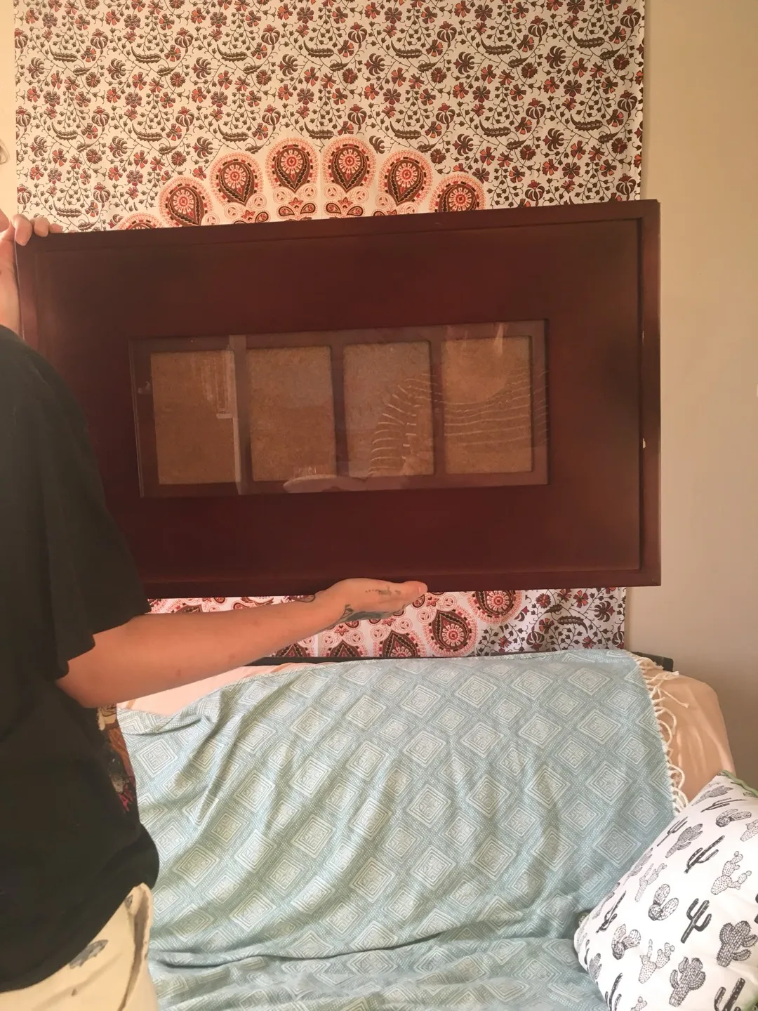 Cute wooden picture frame holds 4 photos! Small chips on the one side but you can either paint over it or colour it in!