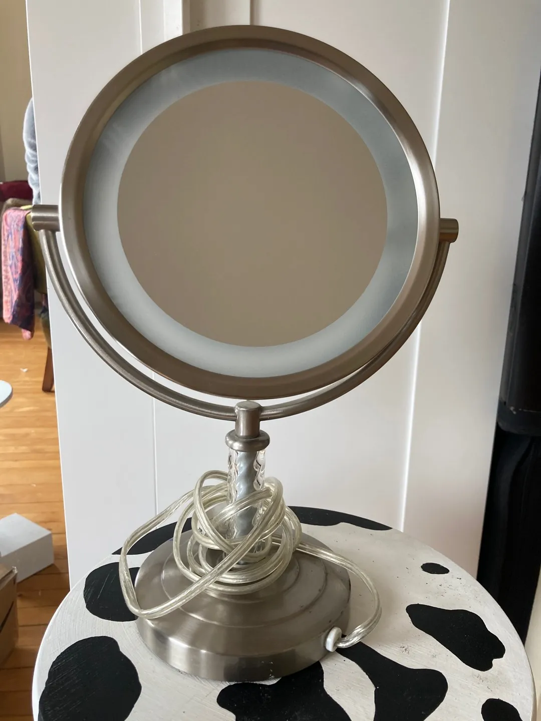 Small vanity mirror. Ring light style. Rotates and one side is close up. Recently changed the lightbulb.