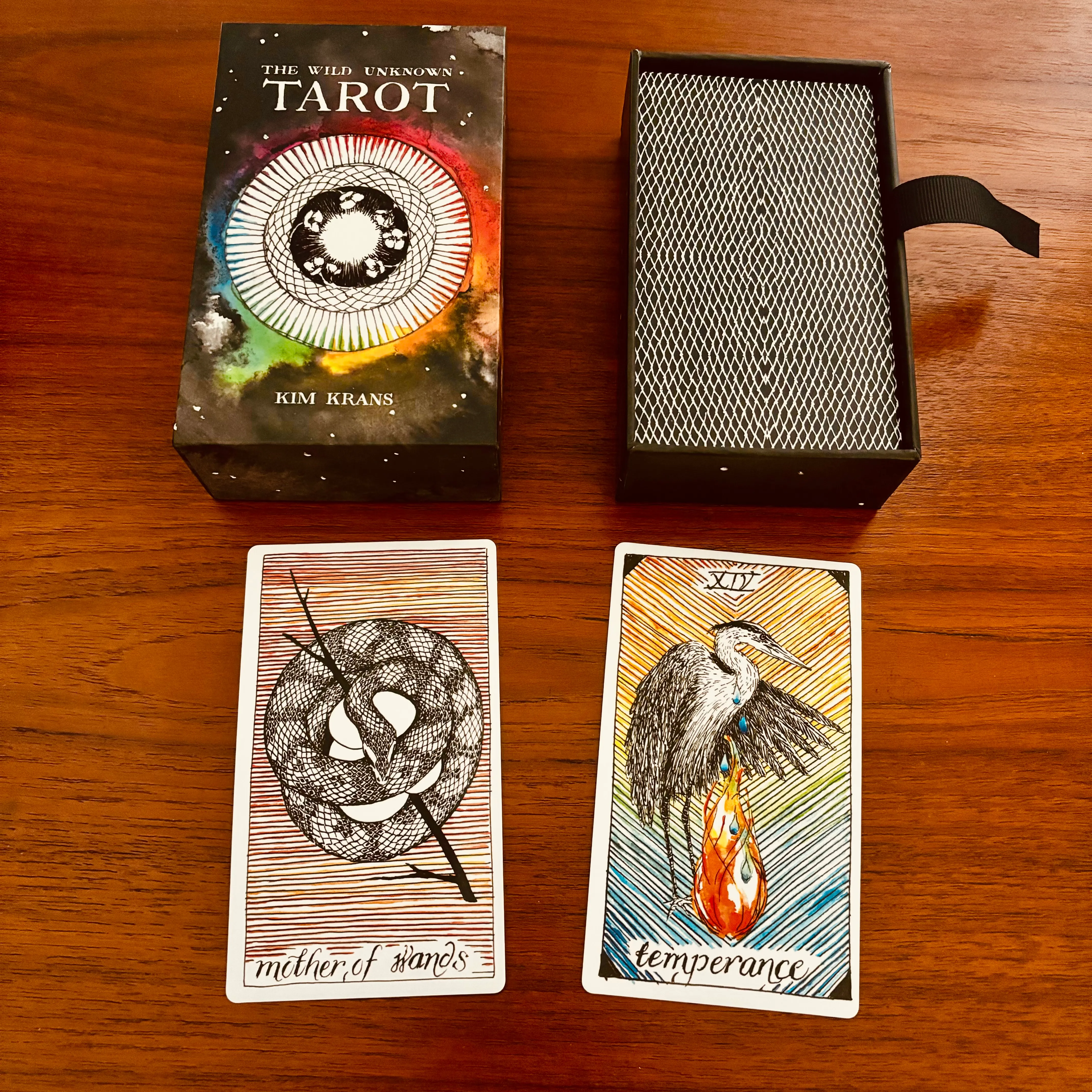 Tarot deck with colourful artwork by Kim Krans. Includes box, cards, and guidebook.
