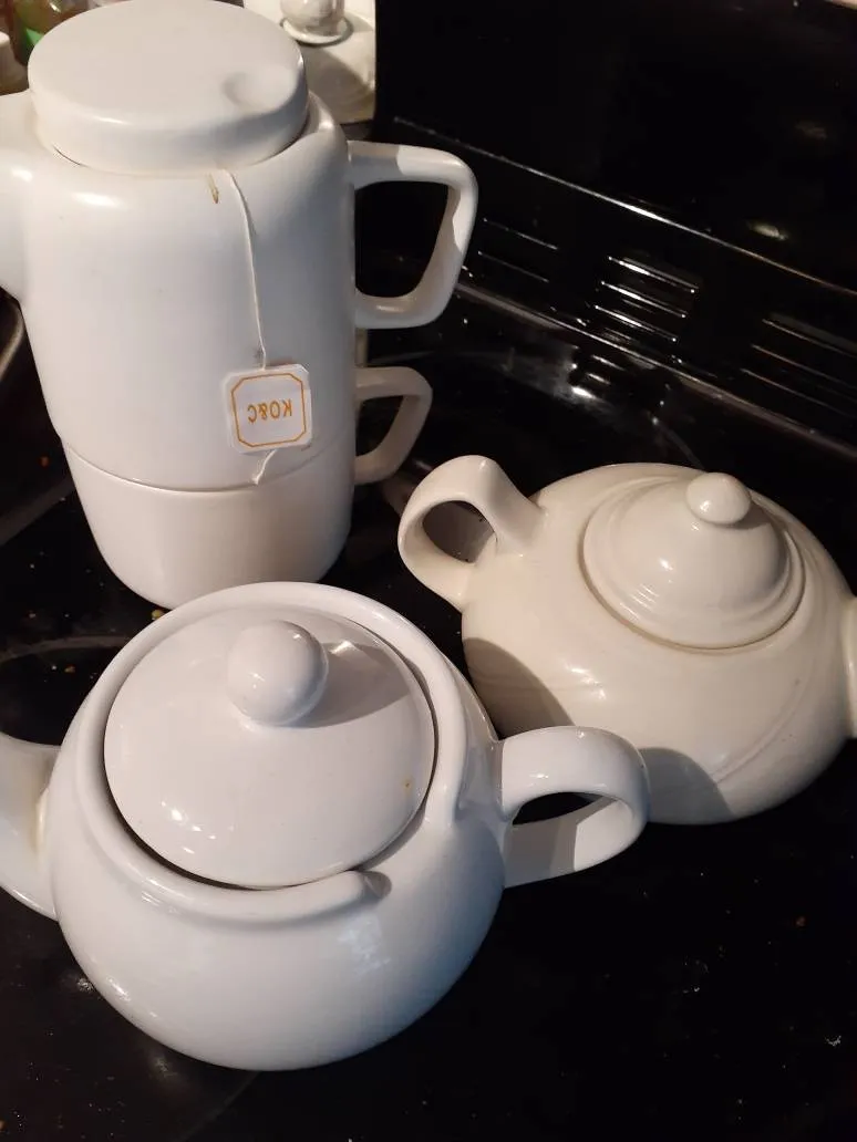 No human needs three tea pots. Not particular tied to any of them but looking to get rid of 1 or 2