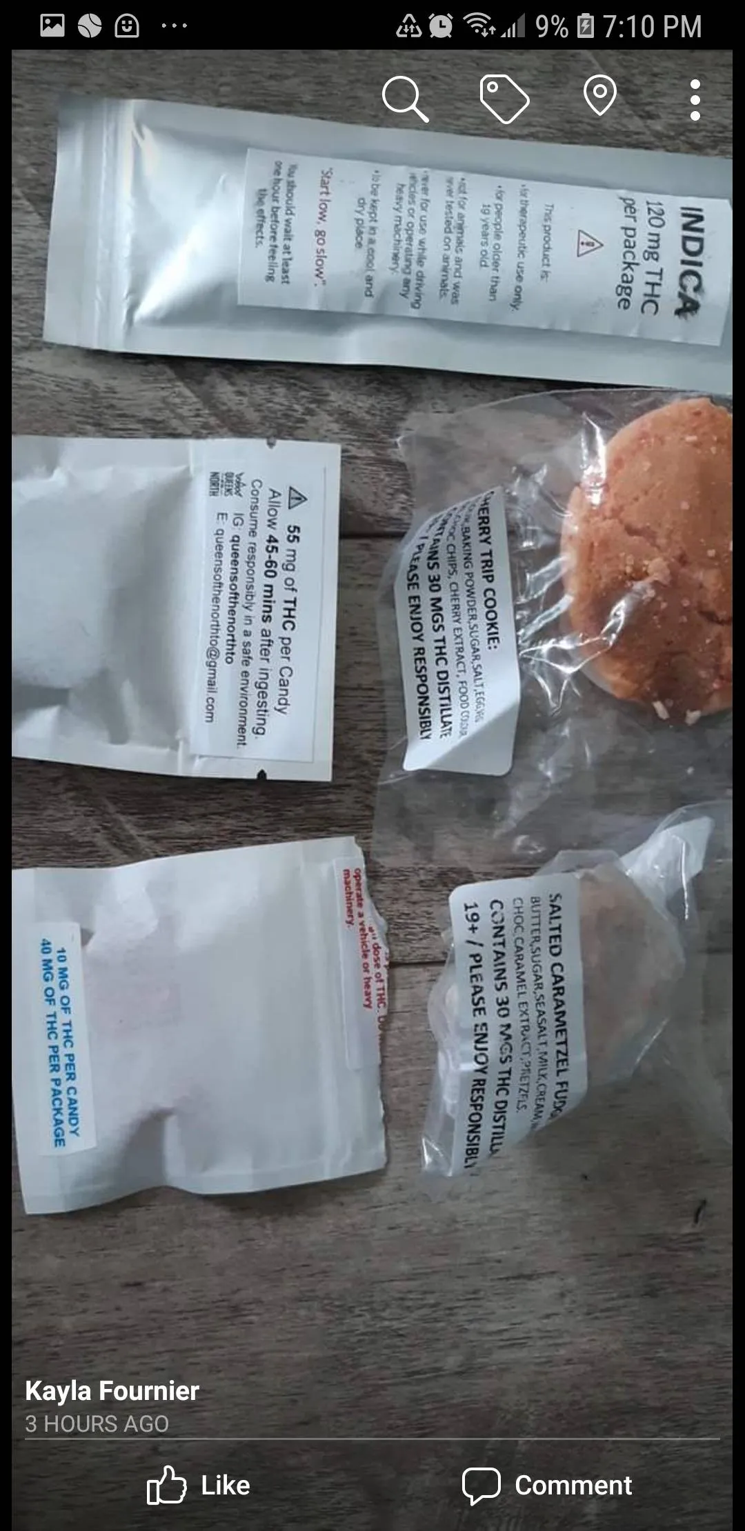 ππ²πππ¨π¦Trading $340 worth of high quality 420 EDIBLES! From Queens of North and the Cannibistro dispensaries. 6 cookies 30mg each (birthday cake, cherry trip, devils foodcake), 9 fudge 30 mg each (cookies and cream, salted caramel, hella nutella), 1 indiace hard candies sealed pack 120mg, 3 gummies 10mg each, one chocolate sealed 55mg, 1 quarter fudge orea that was 60mg so 20mg remaining. Cookies and fudge have a shelf life of 1 month, or 3 months if refrigerated or 6 months if frozen. Candies and chocolates have a 1 year shelf life.