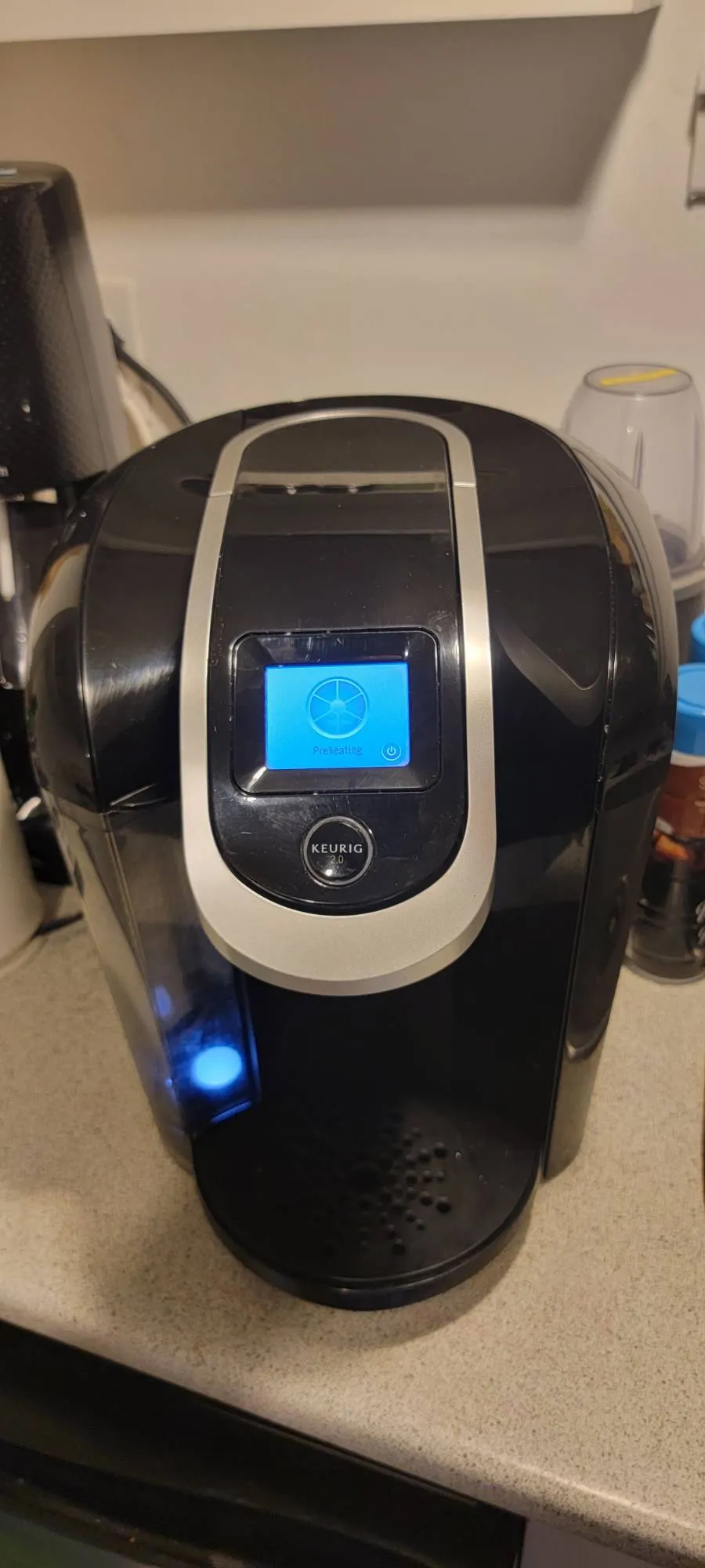 Keurig coffee maker with 38 mixed flavoured coffee and carafe. In excellent working condition.
