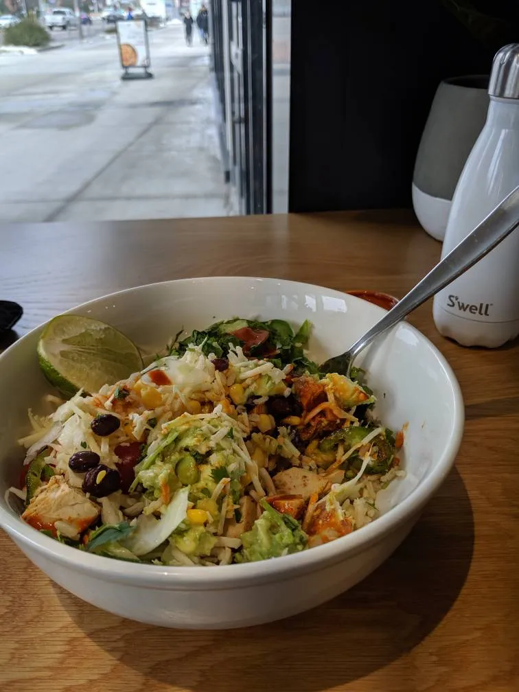 I ordered the Lima bowl. Yummy and a tad spicy. Delicious! I wasn't able to finish the whole thing, so I packed up the rest in my own container.