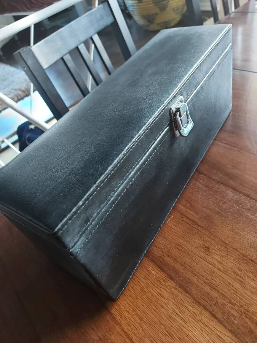 Barely used. 9/10 condition. Comes with an opener and has built-in velcro strap to hold wine in place.
