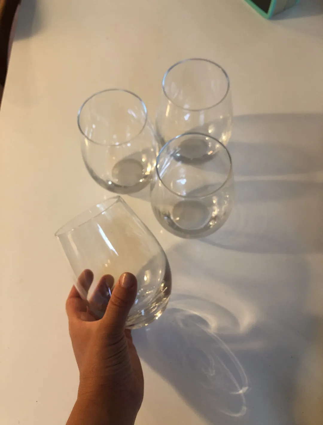 4 stemless wine glasses