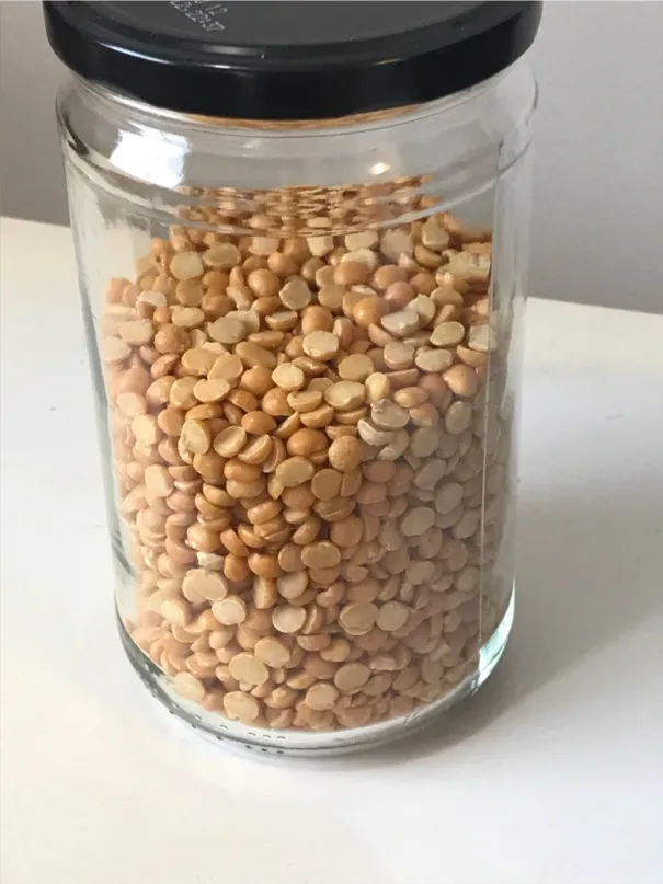 Jarful of yellow split peas. 630 ml jar included in the trade.