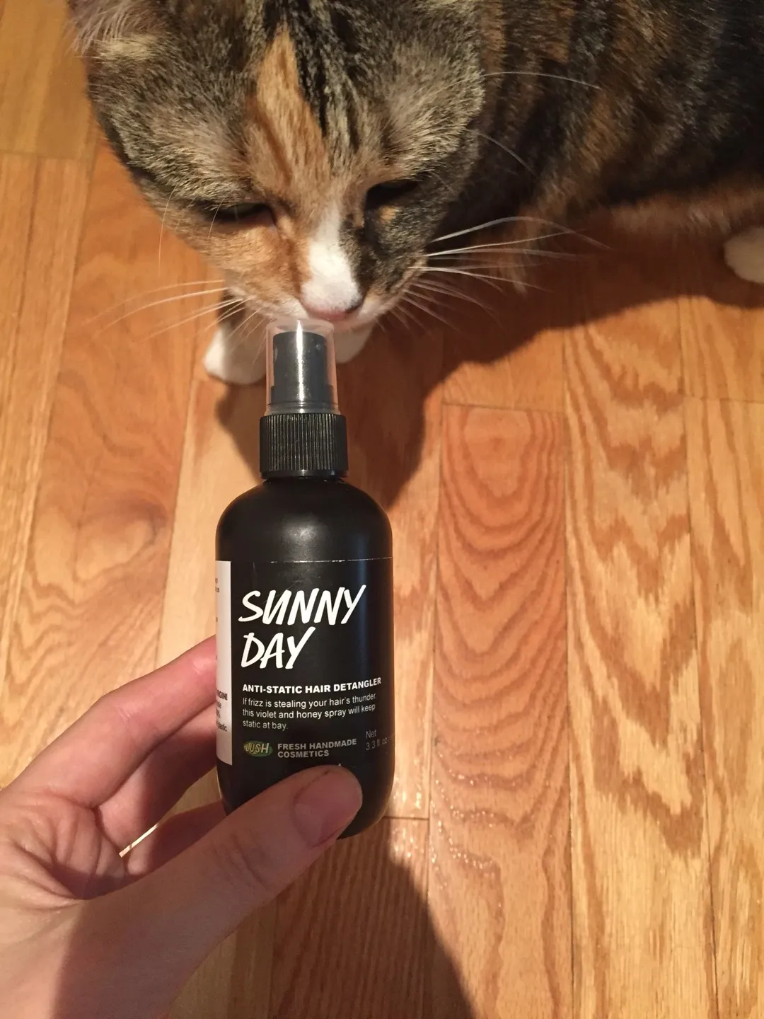 Sunny Day Hair detangler. This is full- it just isn’t my kind of scent- the cat is a fan though 😽