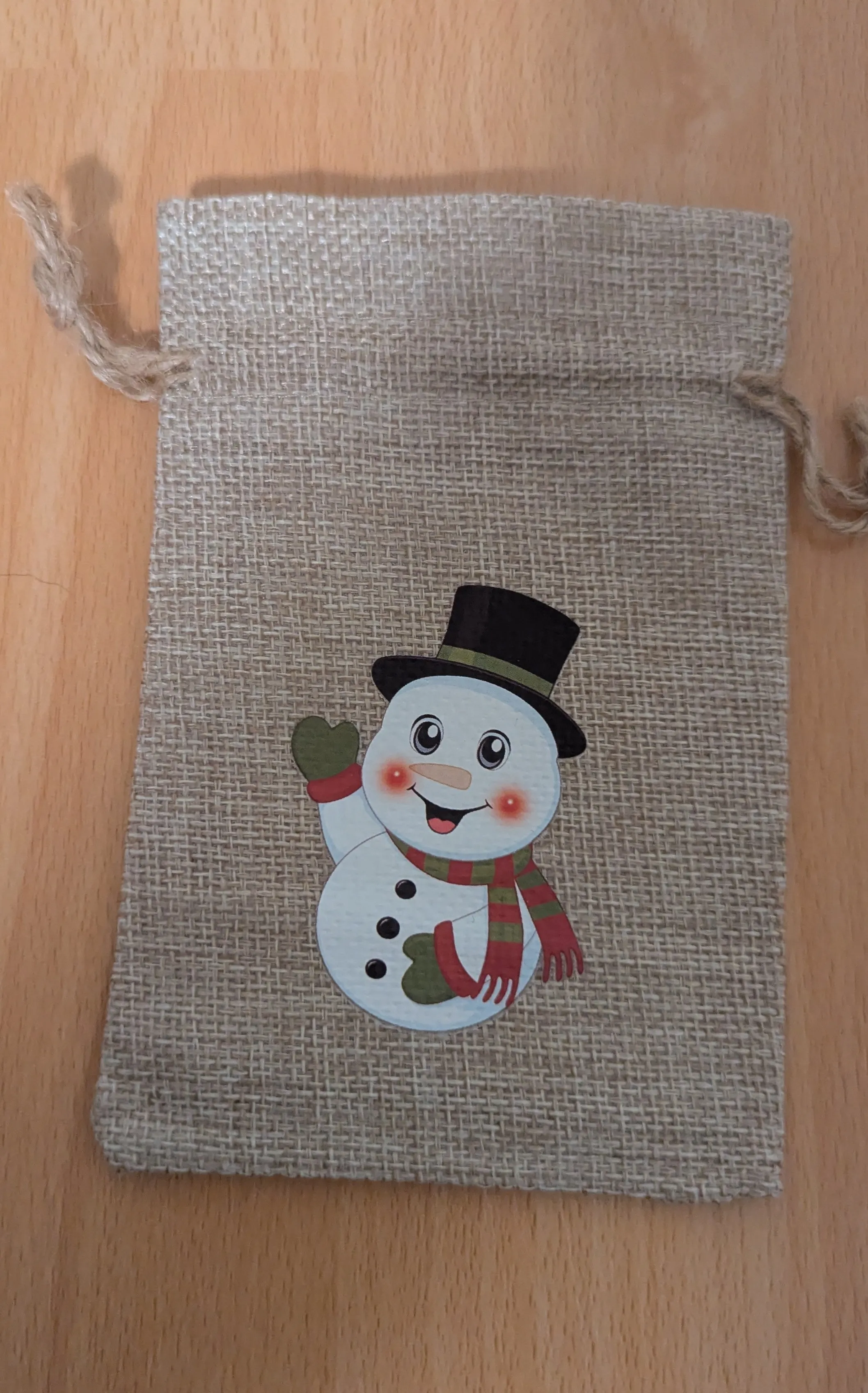 Adorable Snowman Christmas Burlap Gift Bag