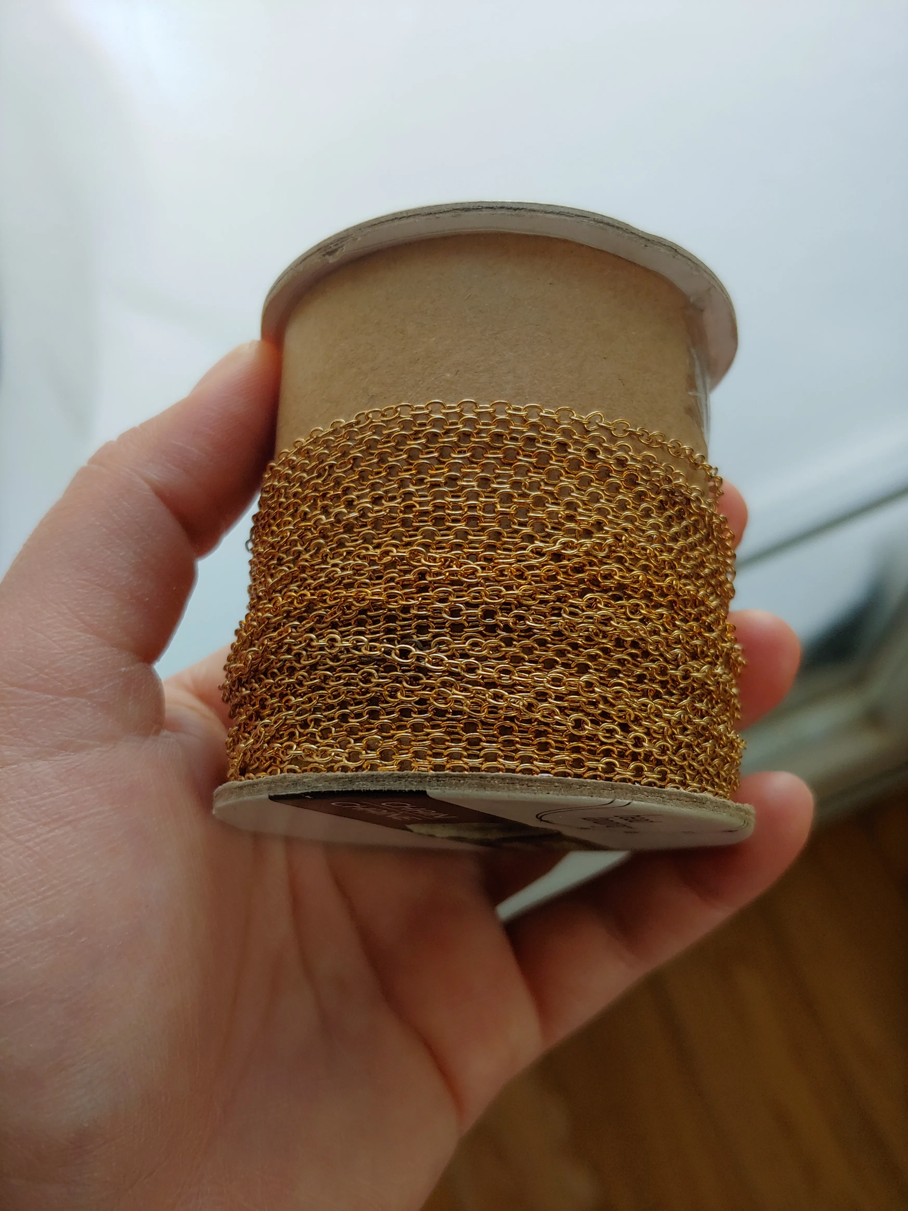 Gold toned chain for jewelry making and crafting. Nickel free. Half left.