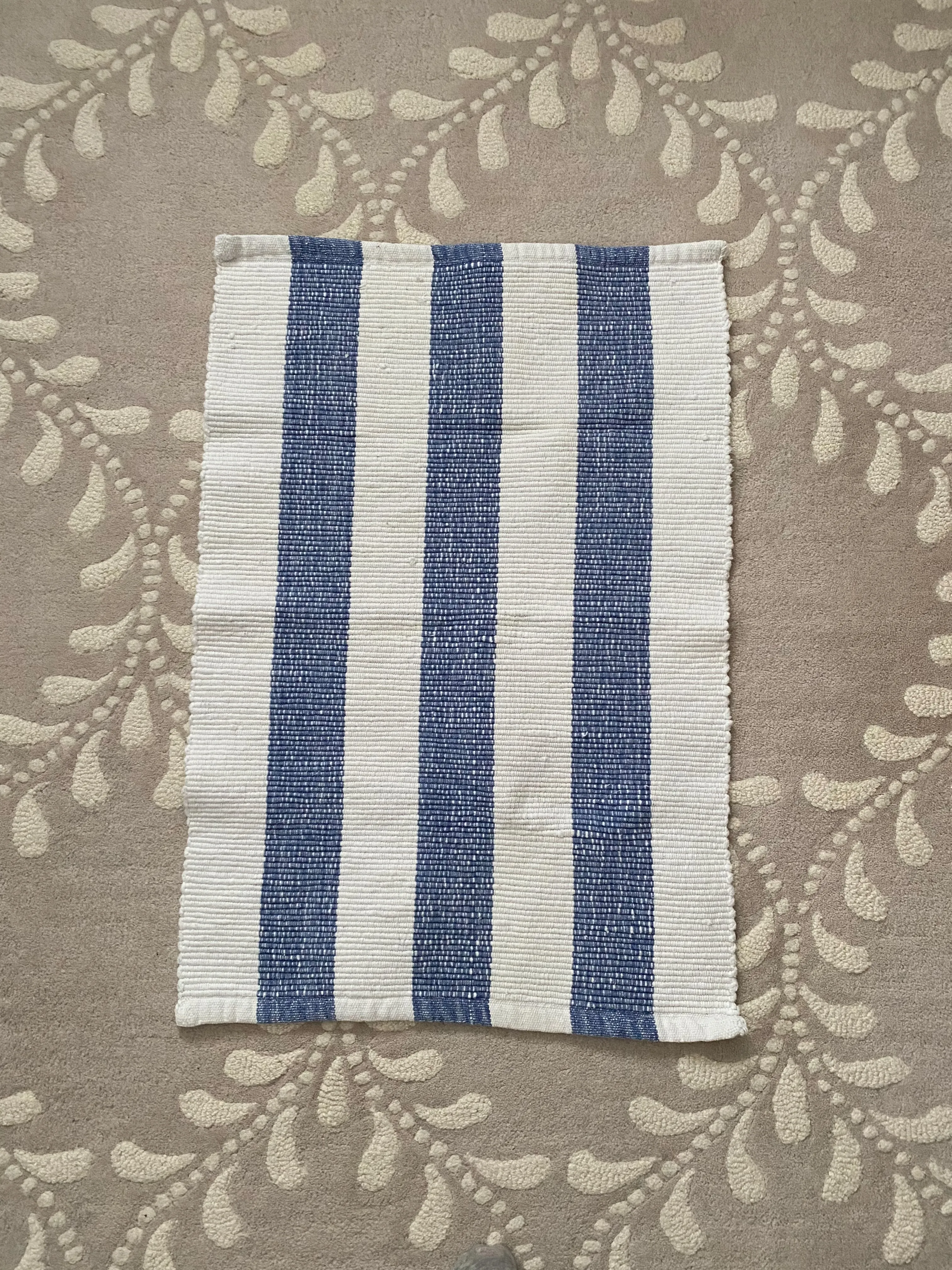 Blue and white woven doorway mat. Approx 35” x 23”. Good condition!