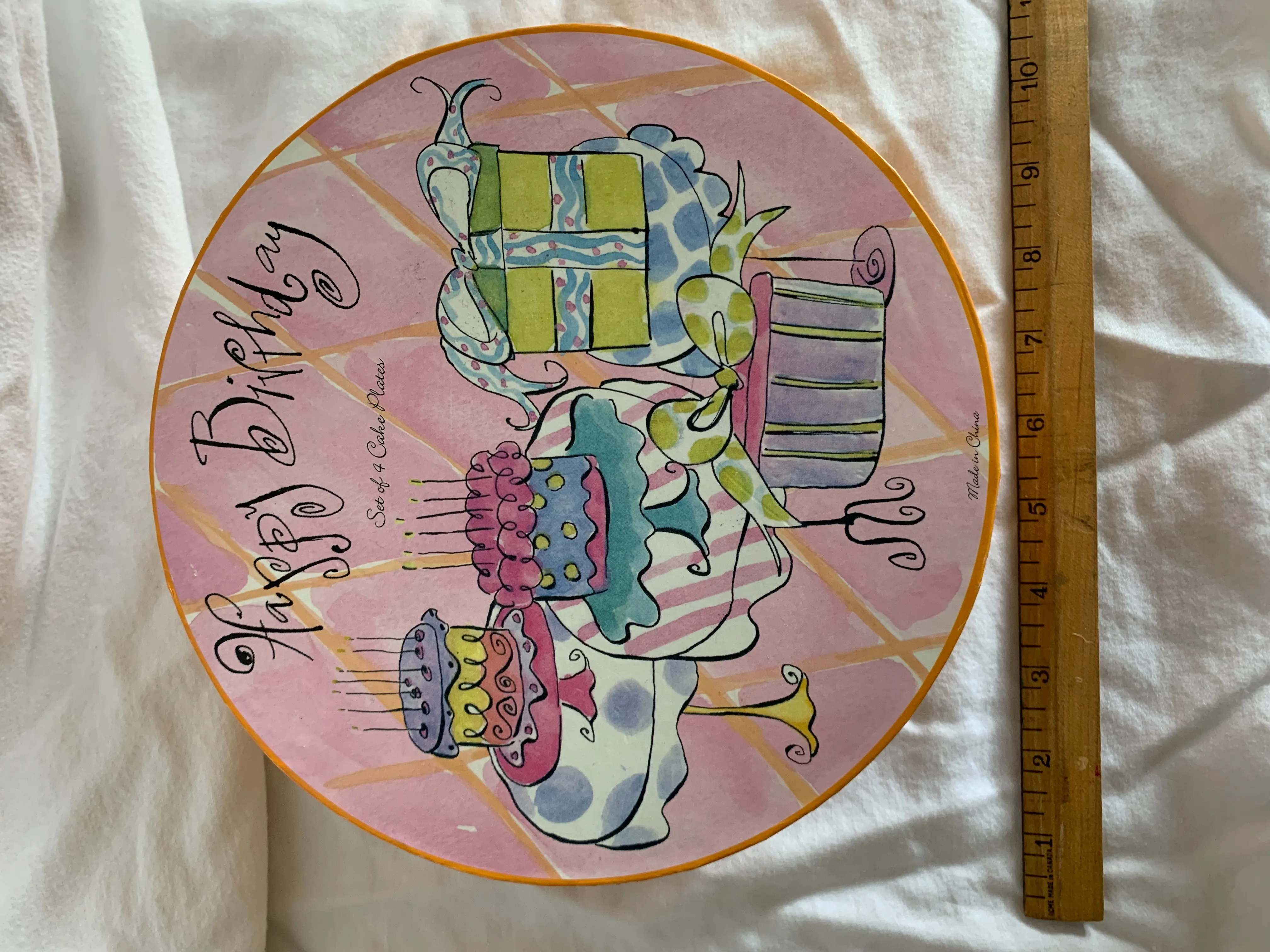 Random little set of 4 birthday plates The ~gRaPHiC DeSiGN~ is very hallmark circa 2003 .. if that’s your vibe this is FOR YOU