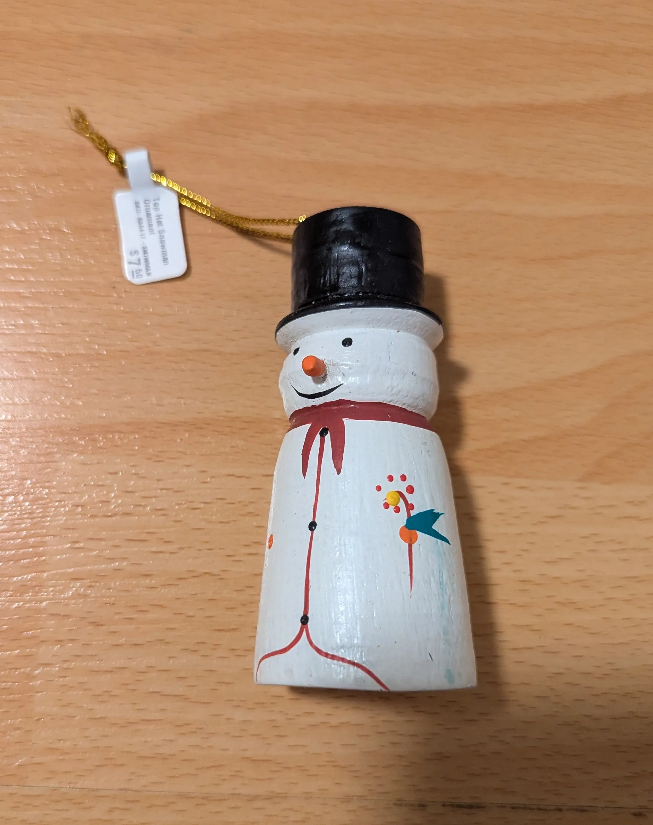 Brand New with Tags Adorable Top Hat Snowman Ornament