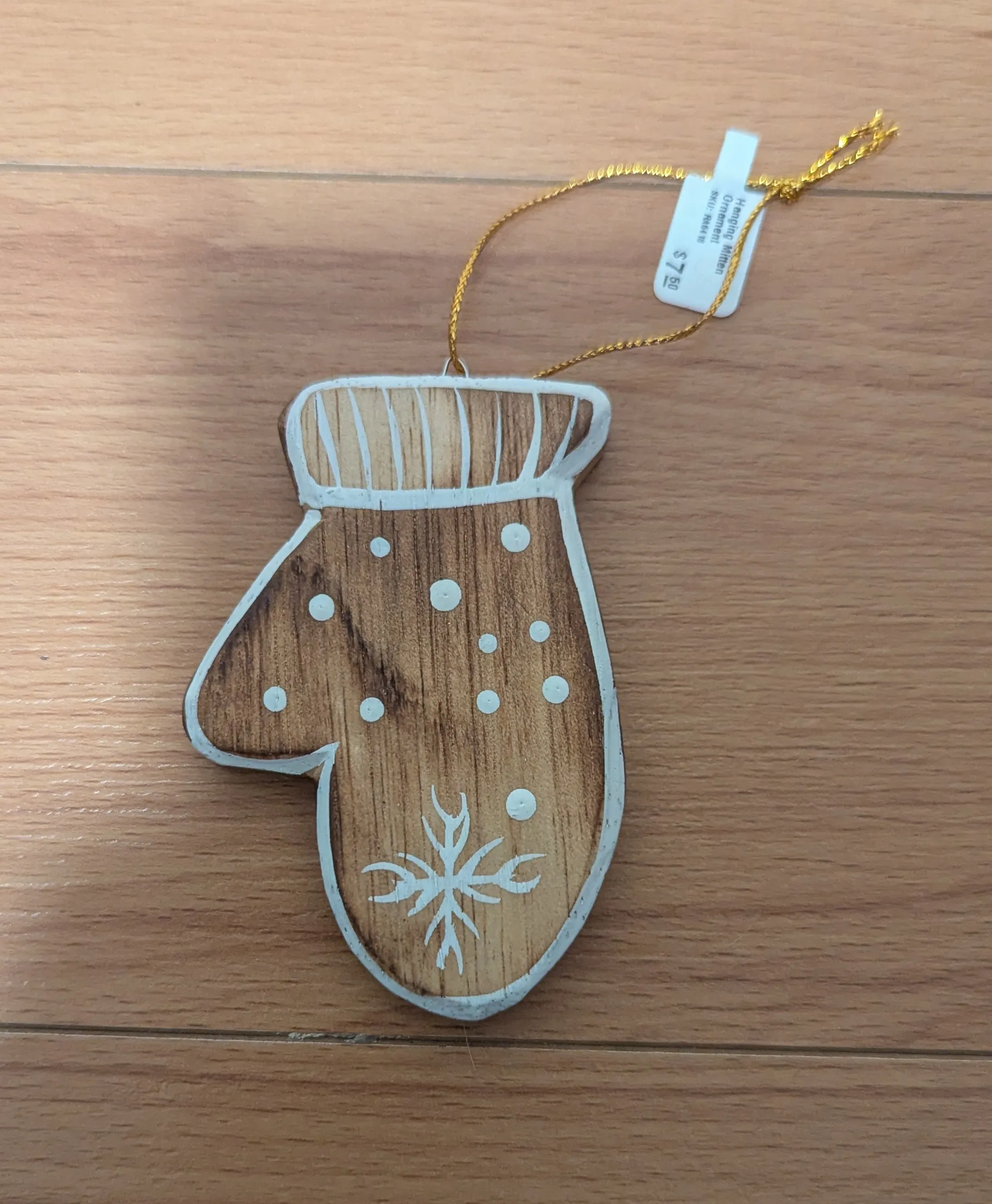Brand New with Tags Wooden Mitten Christmas Ornament
