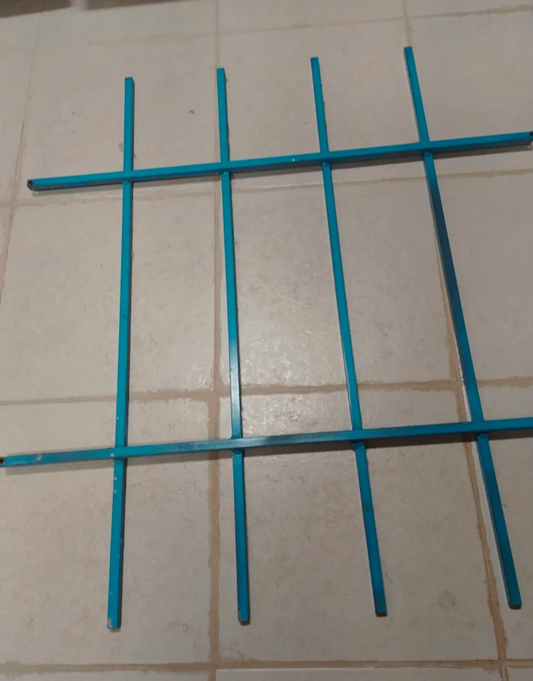 Heavy duty Blue Metal Bars in various shapes. Can be used for strengthening doors and windows for security, or for arts and crafts, or in the garden as a beautiful trellis. 3 available.