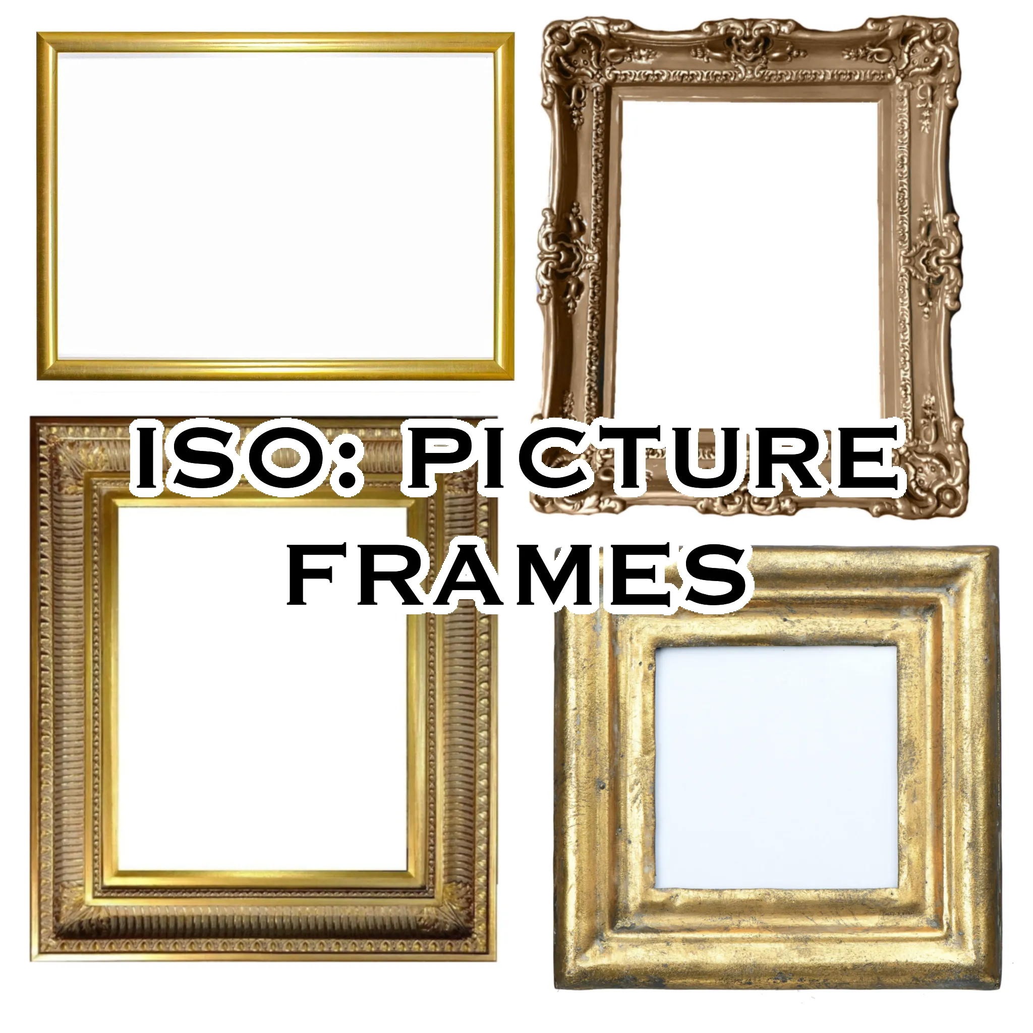 Hey there, I’m in need of picture frames! I need multiple 12 x 16, and 8 x 10. Please please please if you have any that you’re looking to trade for, please reach out and tell me what you’re needing.