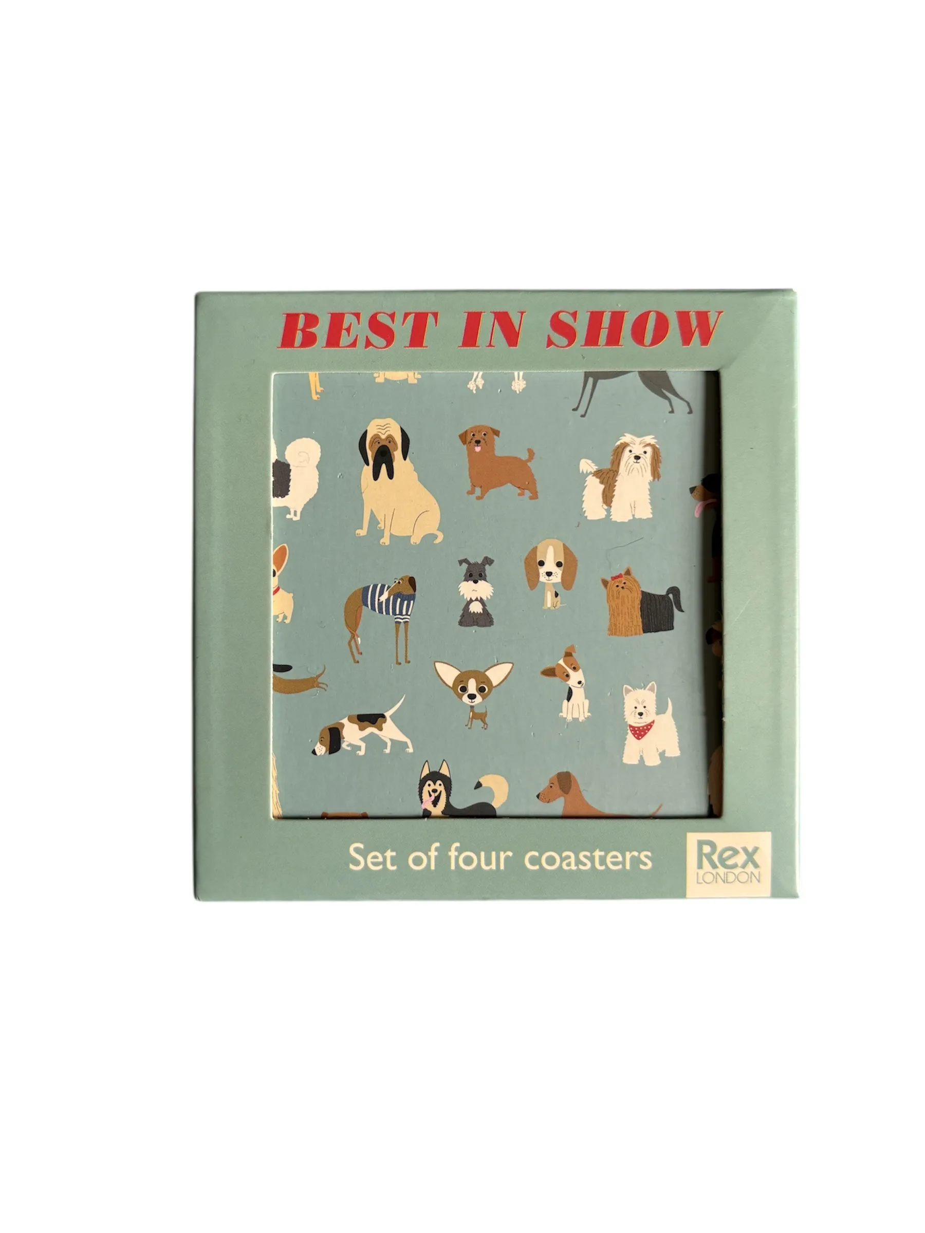 Here’s a set of four Rex London "Best in Show" coasters! These cork-backed coasters feature an adorable dog-themed design. They are designed in the UK and imported by Rex London. Perfect for any dog lover!