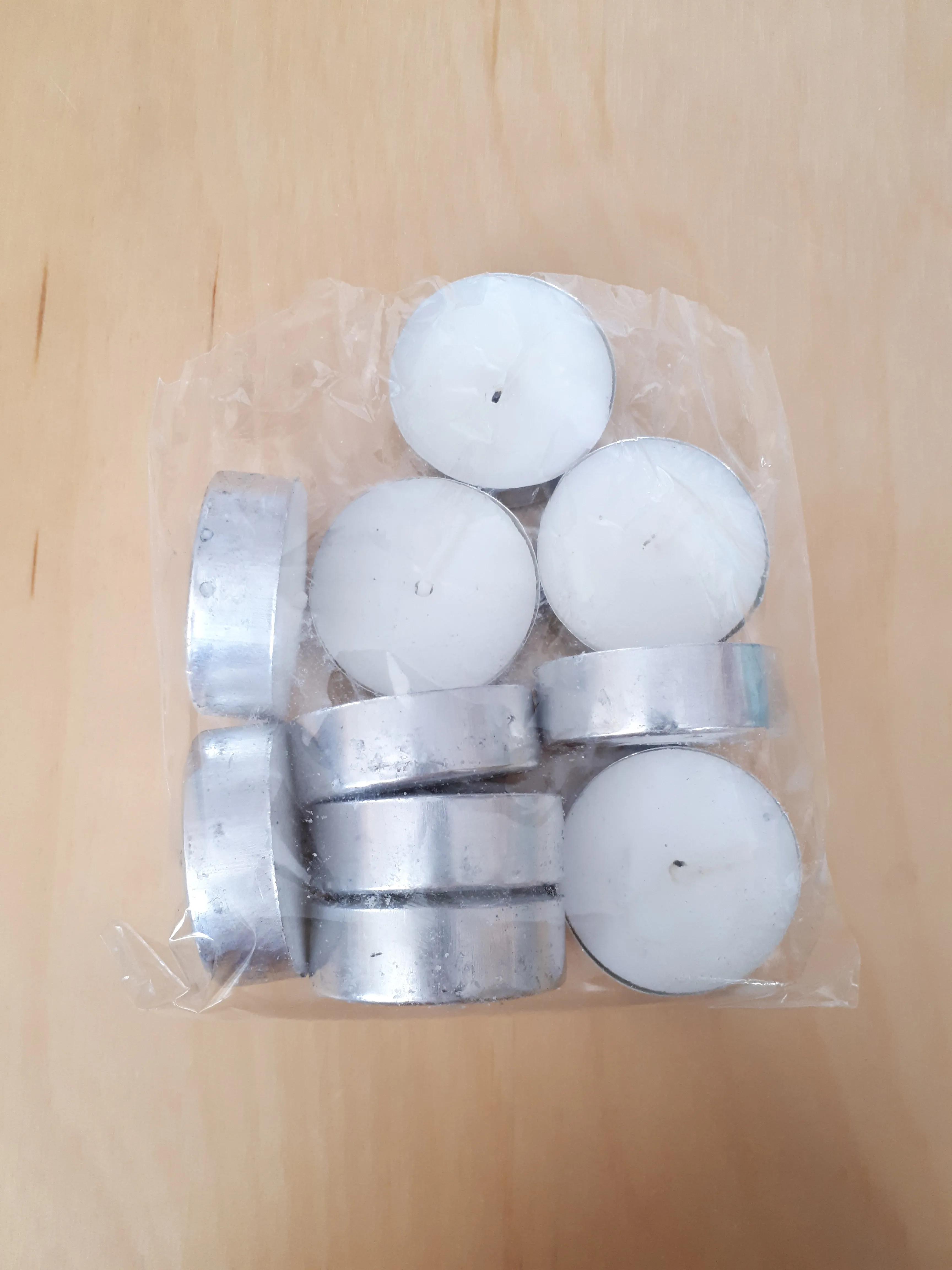 Package of 10 tealights: 9 are new. 1 was lit for maybe 30 seconds.