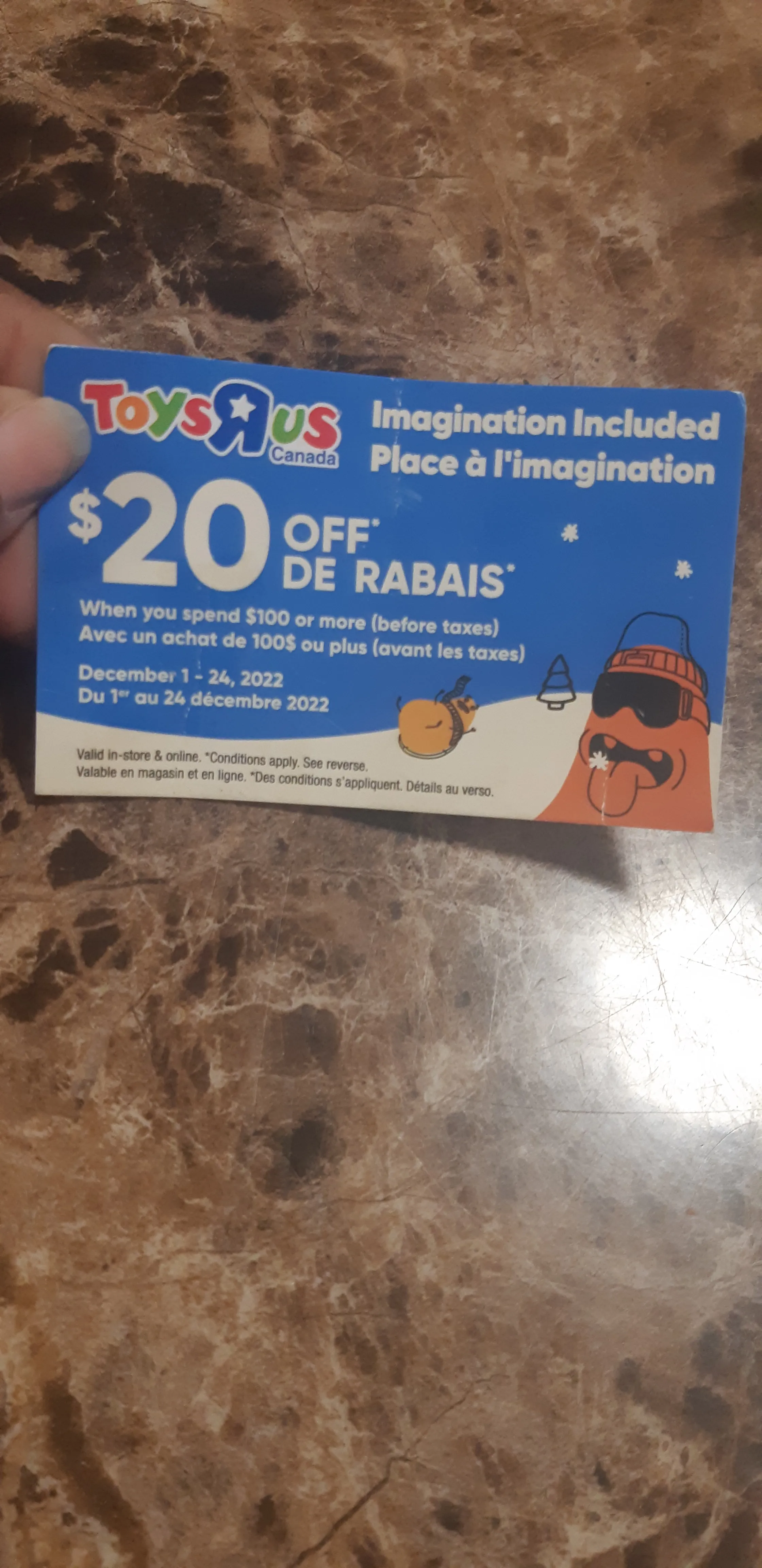 Toysrus $20 off when u spend $100 card. No btz plz.