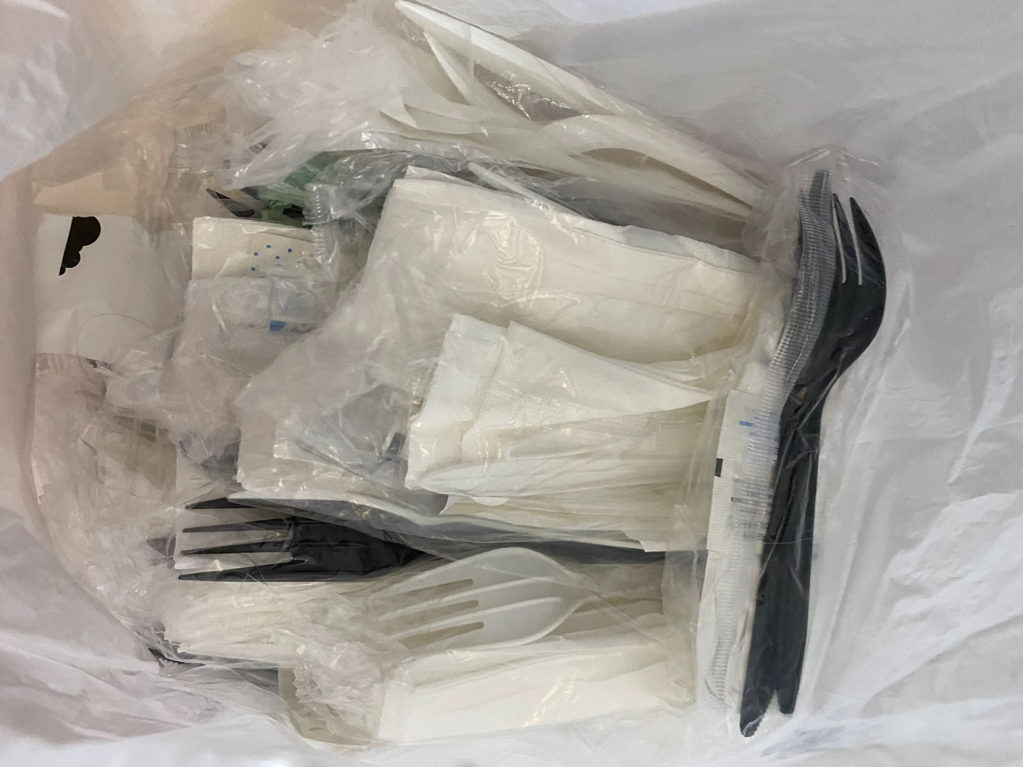 2 bags of disposable cutlery, including forks, knives, and spoons. 1 bag is all individually packaged.