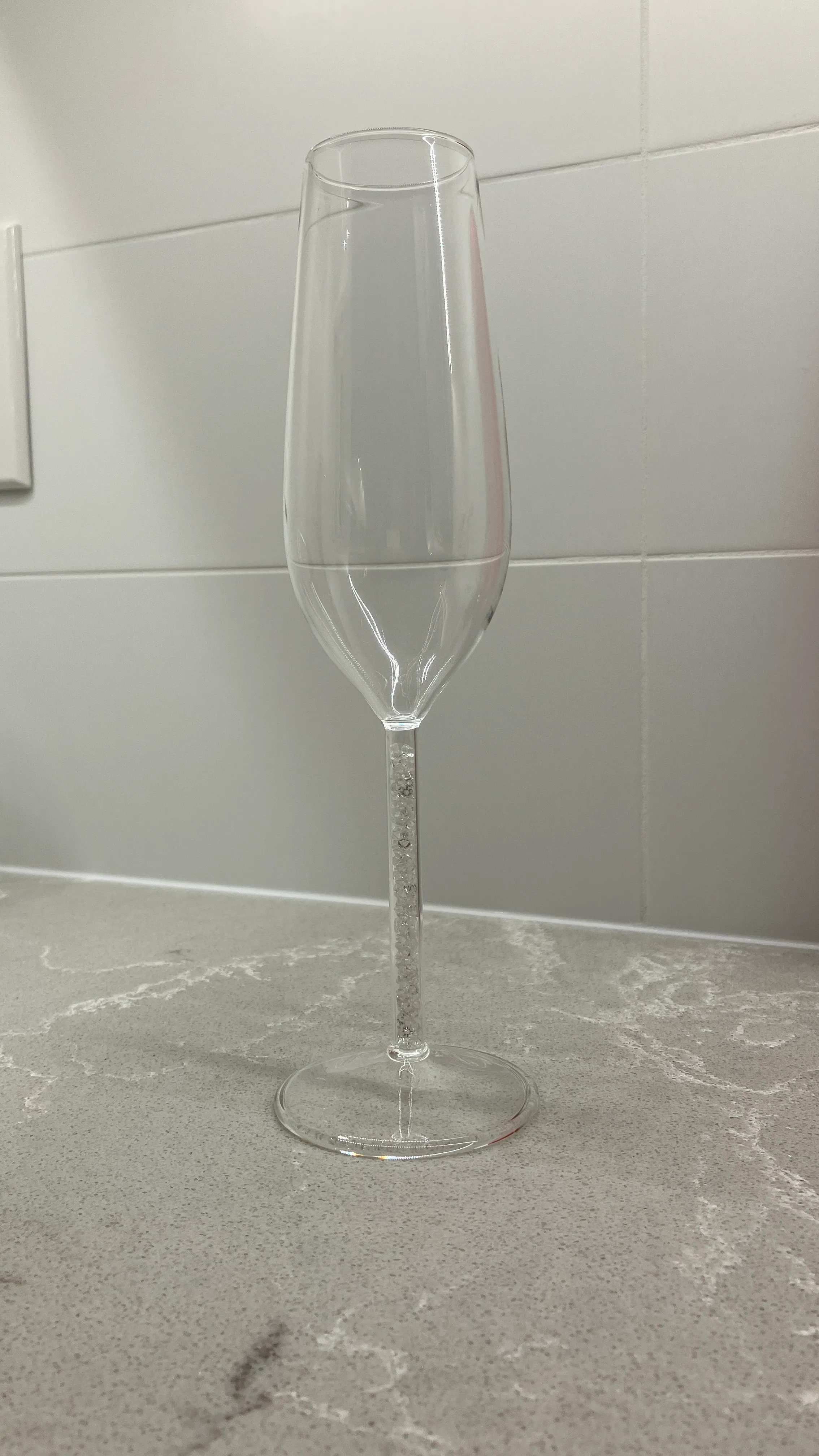 Single Champagne Flute with plastic crystals on the stem